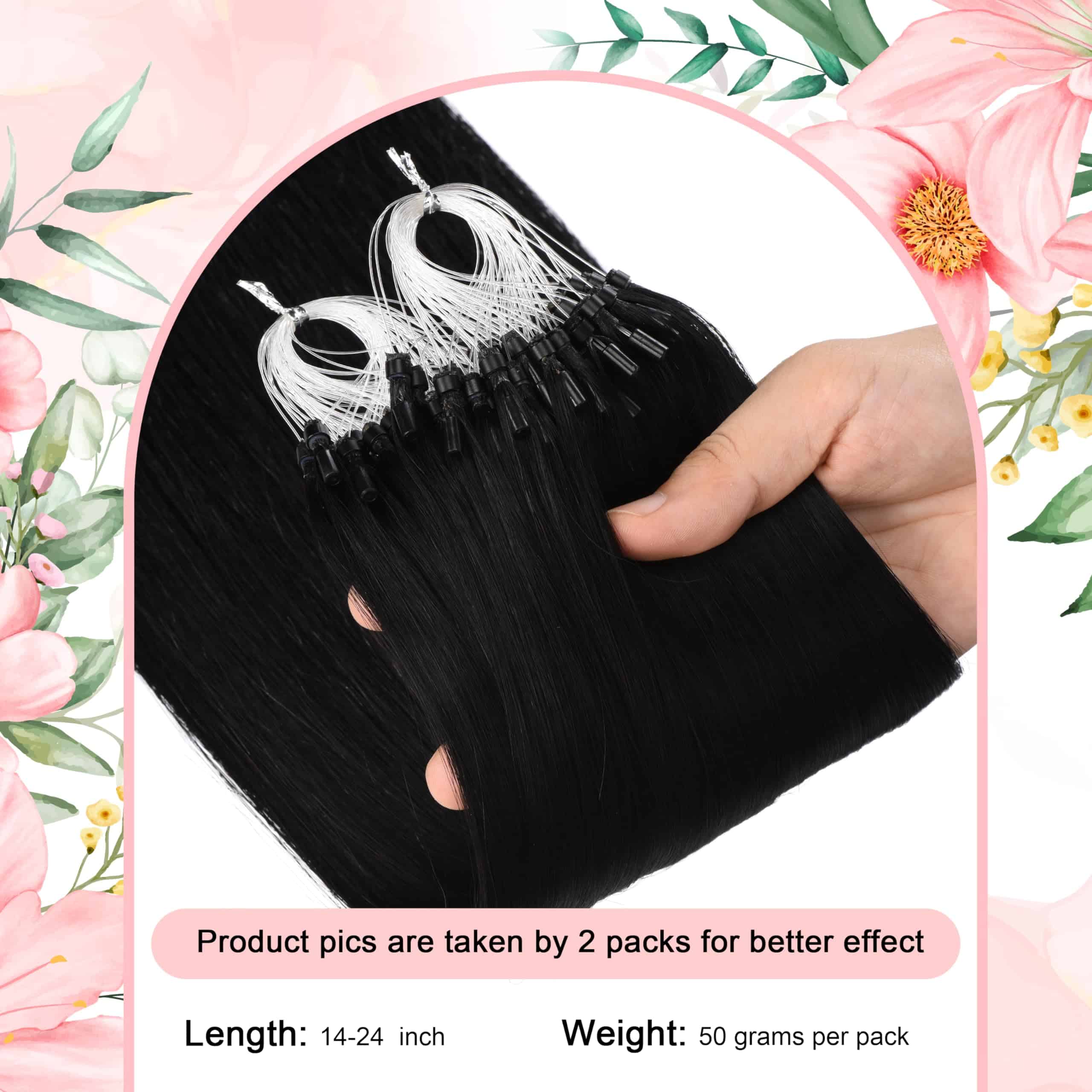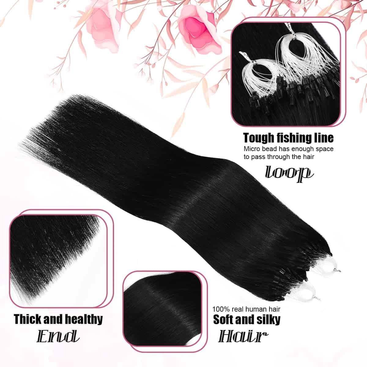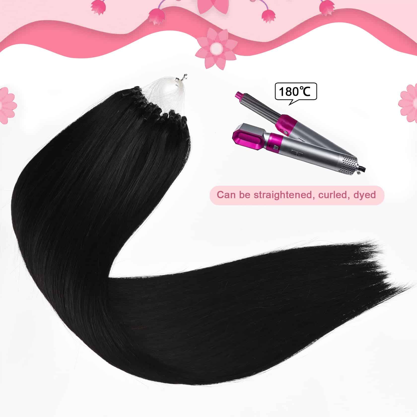 Extensiones de Cabello Humano Remy Negro Jet Micro Link –