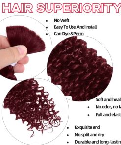 Extensiones de Cabello Humano Rizado en Agua 99J 20 pulgadas 2 Paquetes 100g Cabello Humano para Trenzar Brasileño Virgen Sin Tejido No Procesado 100% Cabello Trenzado Boho. Materiales de alta calidad: Nuestras Extensiones de Cabello Humano utilizan cabello humano de alta calidad para garantizar una calidad y durabilidad confiables. Ya sea que desees crear trenzas bohemias de moda u otros estilos complejos de trenzado (incluidas trenzas de caja, trenzas africanas, torzadas y más), tenemos los productos para satisfacer tus necesidades. Ajuste natural: Las Extensiones de Cabello Humano tienen una textura similar al cabello humano y un alto grado de ajuste, lo que las hace más naturales y cómodas de llevar. No solo eso, también tienen buenas propiedades de tintura y planchado, para que puedas peinarlas y teñirlas según tus preferencias personales. Especificaciones de las Extensiones de Cabello Humano: Cada juego de Extensiones de Cabello Humano contiene 1 paquete, con un peso total de 50 g, cantidad y peso suficientes para satisfacer tus necesidades de uso múltiple. Si te gustan las trenzas completas, te recomendamos que compres 3-4 paquetes. Puedes ajustar libremente la longitud y el grosor de los mechones de cabello para obtener el efecto de trenzado ideal. Fácil de usar: El diseño de nuestras Extensiones de Cabello Humano es simple y fácil de usar, y no se requieren habilidades profesionales para completar estilos de trenzado complejos. Con unos pocos pasos sencillos, puedes lograr fácilmente impresionantes trenzas bohemias, ahorrándote tiempo y esfuerzo. Varias opciones: Ofrecemos Extensiones de Cabello Humano en una variedad de colores y longitudes para que elijas, para satisfacer las necesidades de diferentes ocasiones y estilos. Ya sea para uso diario o para ocasiones especiales, tenemos el ajuste perfecto para mantenerte luciendo glamorosa por mucho tiempo.