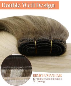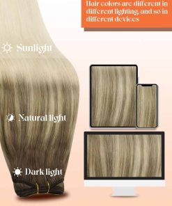 Extensiones de Cabello Humano Sunny Hair Cosido en Trama Extensiones de Cabello Ombre Rubia Trama Real de Cabello Humano Raíces Castañas Claras a Rubias para Mujeres 16 pulgadas 100g. Nuestras extensiones cosidas se mezclan naturalmente con tu cabello, sin usar clips ni alambres; El diseño de doble trama garantiza durabilidad; Los cabellos cortos en la raíz de las extensiones son normales y no representan ningún problema. Las extensiones de trama pueden aplicarse utilizando una amplia gama de métodos, incluyendo cosido, colocación con clips, con pegamento y con microlink; Al usar extensiones de cabello cosidas, ten cuidado con la costura en la incisión para evitar la pérdida de cabello. Profesional y orientado a estilistas; Nuestras extensiones de trama ofrecen opciones personalizadas para crear estilos adaptados a muchas ocasiones; Para volumen completo, un paquete es suficiente; Para mayor grosor, utiliza 2-3 paquetes. Las extensiones de trama Sunny Remy mantienen su color natural, textura suave y versatilidad para estilizar, mereciendo el mismo cuidado meticuloso que tu propio cabello; Se recomienda peinar suavemente tus extensiones y trenzarlas suavemente antes de acostarte para prevenir enredos; Al peinar, procede suavemente para evitar tirones o tirones que puedan provocar la pérdida de cabello; Utiliza una mascarilla capilar o aceite esencial para dar brillo. Utilizamos tecnología avanzada de teñido capilar, garantizando resultados de coloración más suaves para satisfacer tus diversas necesidades de color; Incierto Enviar una foto de tu cabello y te ayudaremos a encontrar el color adecuado