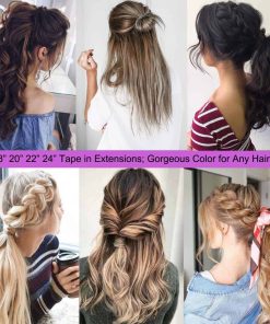 1. Excelente Calidad: Las Extensiones de Cabello Tape in están hechas de cabello humano remy al 100% y cinta invisible hipoalergénica premium que es resistente, segura y no dañina; 4 longitudes diferentes con colores deliciosos: 16″(30gramos)/18″(40gramos)/20″(50gramos)/22″(60gramos); excelentes extensiones para grosor y reflejos.