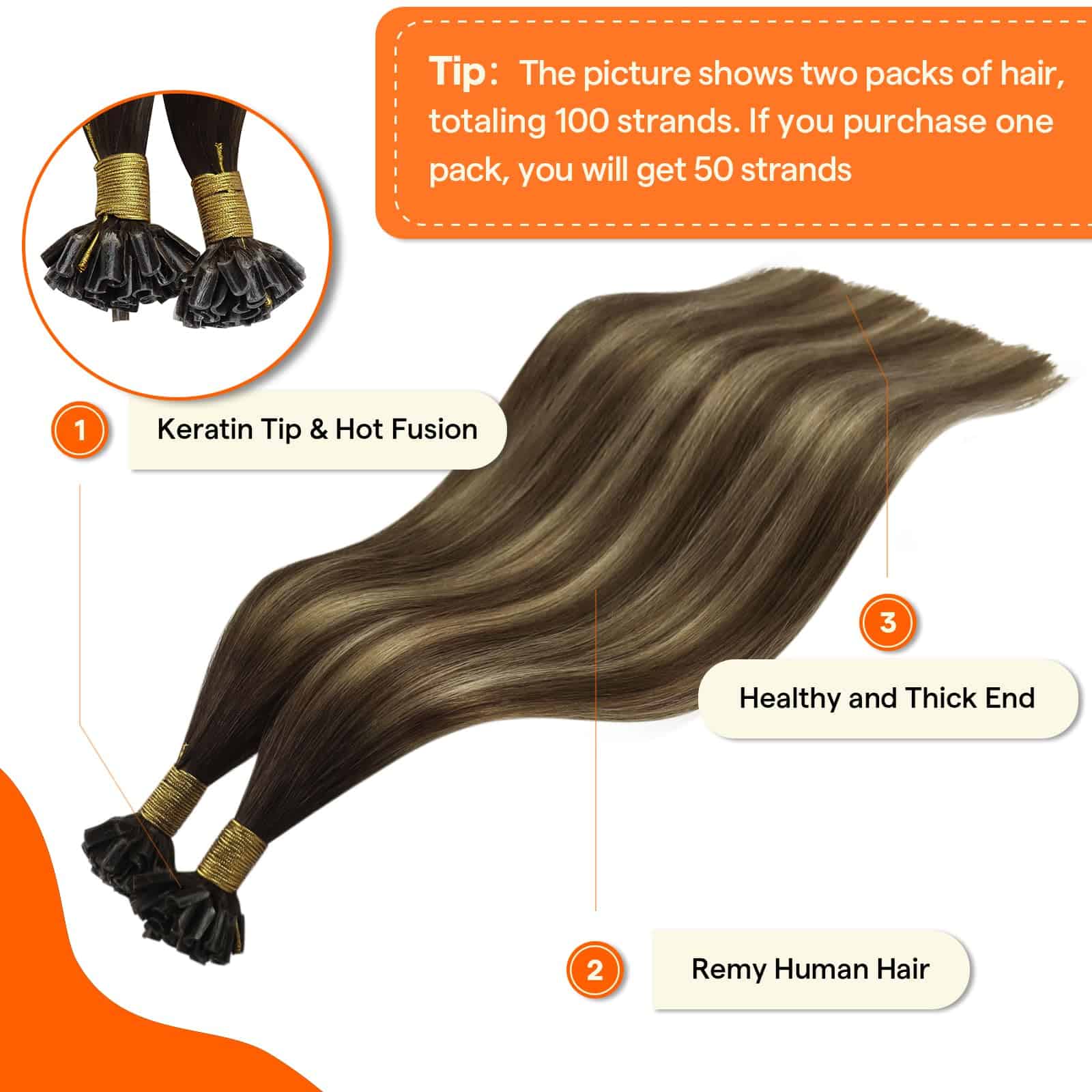 Extensiones de Cabello Humano U Tip Full Shine 18 Pulgadas