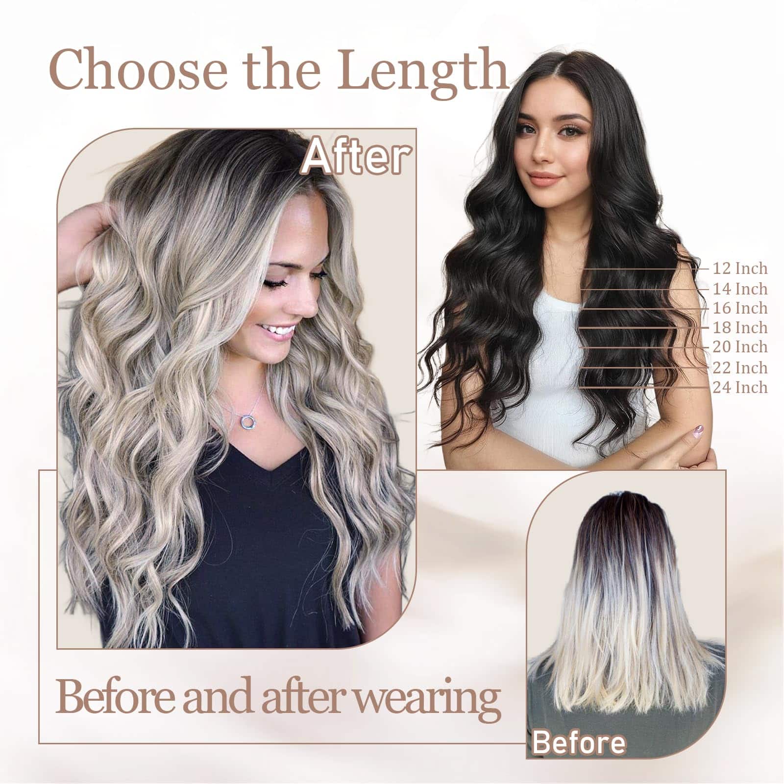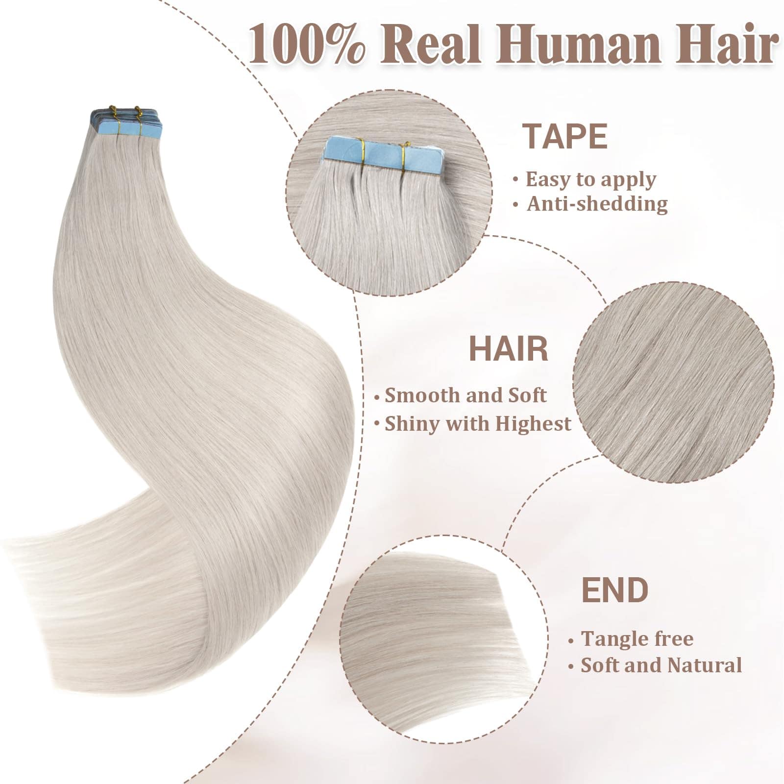 4. Mantenimiento de las Extensiones de Cabello Humanos Remy: Si necesitas alisar o rizar las extensiones de cabello de cinta, controla la temperatura por debajo de 180, teñir de claro a oscuro. Usa un champú suave y acondicionador, lávalos suavemente con agua tibia a lo largo de la textura y déjalos secar al aire para obtener los mejores resultados. Cuidado adecuado para mantener su suavidad y brillo.