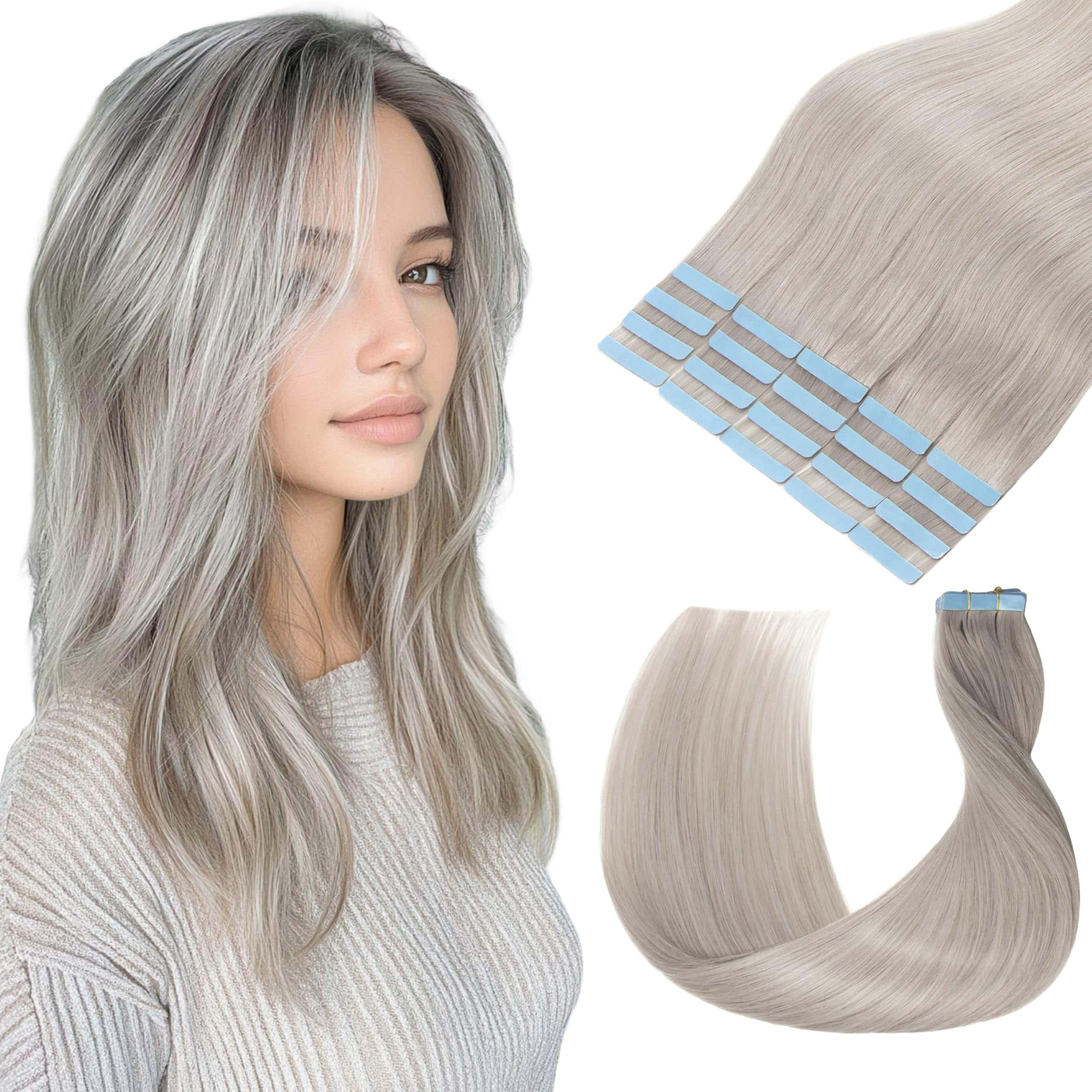 2. Cintas de calidad Premium Invisible: Cintas azules hechas en EE. UU., las extensiones de cabello de cinta de Lveyan utilizan cinta invisible fuerte que es hipoalergénica e impermeable, la cinta será más fuerte después de calentar moderadamente. La cinta transparente es imperceptible y se mezcla perfectamente con el cabello. cintas reutilizables, Reemplace las cintas cada 4-6 semanas y es fácil de aplicar o quitar sin dañar su propio cabello.