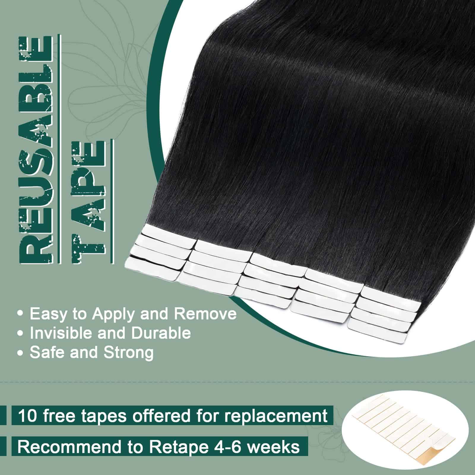 2. Calidad premium en cintas invisibles: Nuestras cintas doble cara, invisibles y reutilizables son de la más alta calidad, lo que las hace fáciles de instalar o quitar. Cada paquete también contiene 10 cintas extras para que las puedas reemplazar cuando sea necesario. Se recomienda ajustar la cinta cada 4 semanas para mantener el cabello luciendo genial. La cinta puede hacerse más adhesiva calentándola.