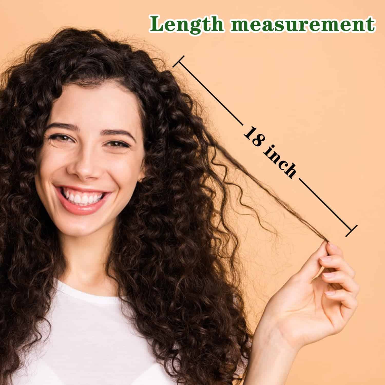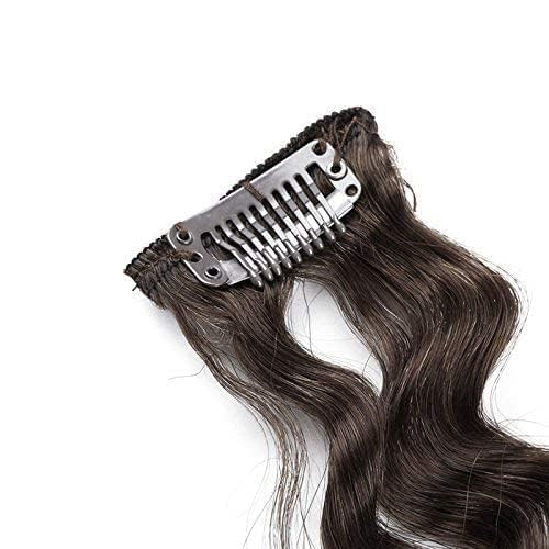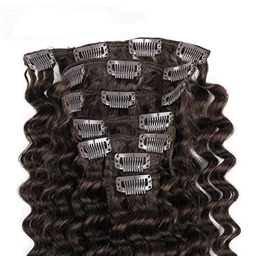 Extensiones de cabello rizado con clip hechas de cabello humano real remy. Este set incluye 7 piezas de diferentes longitudes: 1 pieza de 8″ (20cm) con 3 clips cada una, 2 piezas de 6″ (15cm) con 3 clips cada una, 2 piezas de 4″ (10cm) con 2 clips cada una, y 2 piezas de 2″ (5cm) con 1 clip cada una. El peso total de este set es de aproximadamente 80g, siendo 65g el peso neto del cabello. El color de estas extensiones es marrón oscuro y tienen una longitud de 18 pulgadas. Estas extensiones pueden tratarse y estilizarse como su propio cabello, pero se recomienda no teñirlas. Son de alta calidad, suaves al tacto y libres de enredos si se siguen las instrucciones de lavado adecuadas.