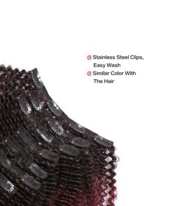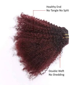 3. Método Súper Fácil de Usar: La extensión de clip in de cabello afro es fácil de instalar y quitar, puedes hacer diferentes peinados según tu gusto. El color es degradado de 1b/99j, negro natural que se desvanece en rojo vino burdeos.