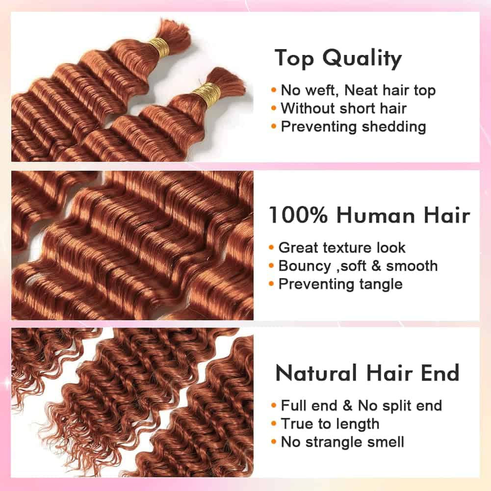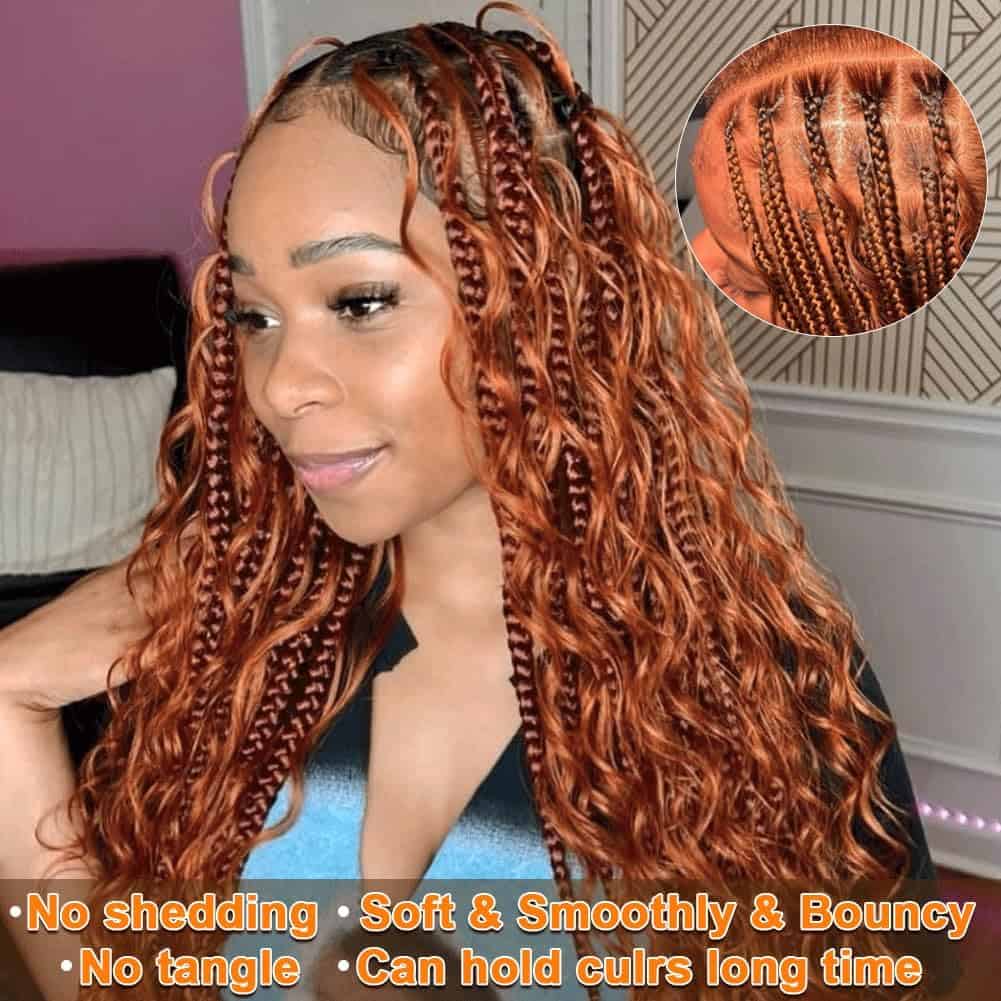 Extensiones de Cabello Rizado Profundo Ondulado para Trenzas Bohemias – Set de 2 Paquetes 100g – Color 350. Estas extensiones de cabello humano son ideales para crear trenzas bohemias. Hechas de cabello humano brasileño de alta calidad, estas extensiones no se caen ni se enredan, y no tienen olores desagradables. Pueden ser fácilmente remodeladas para adaptarse a diferentes estilos de peinado. La longitud de las extensiones varía de 16 a 22 pulgadas, y cada paquete viene con 2 paquetes de 100g en total. Si prefieres un aspecto más completo y voluminoso, te recomendamos comprar 3-4 paquetes adicionales. Estas extensiones se pueden utilizar para una variedad de estilos de trenzado, como trenzas sin nudos, trenzas en caja, trenzas micro, trenzas africanas y torsiones. El cabello humano real es mucho más ligero que otras opciones de cabello, lo que garantiza un estilo cómodo y natural sin ejercer demasiada tensión en el cuero cabelludo. No importa la ocasión, ya sea una cita romántica, una fiesta, un viaje, el trabajo o incluso nadar, estas extensiones son el complemento perfecto para realzar tu belleza natural.