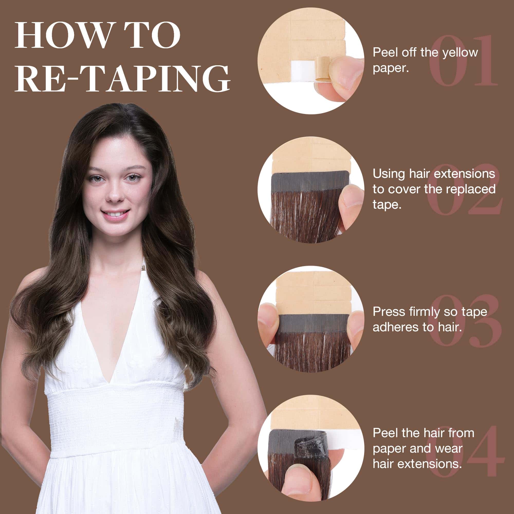 3. Cinta fuerte y suave: Cinta impermeable e hipoalergénica que es suave para el cabello y la piel. Se fortalece ligeramente con calor para un ajuste seguro. Dura 46 semanas por uso. Fácil de aplicar y quitar sin dañar. Reutilizable por 3-4 meses con el cuidado adecuado.