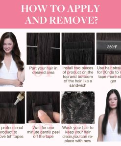 4. Consejos para el peinado y cuidado del calor: Las extensiones tape de GOO GOO son seguras para el calor hasta 250F. Riza o alisa según lo desees. Lávalas suavemente con champú suave en agua tibia, luego sécalas al aire. Mantenlas suaves, brillantes y listas para cualquier look.