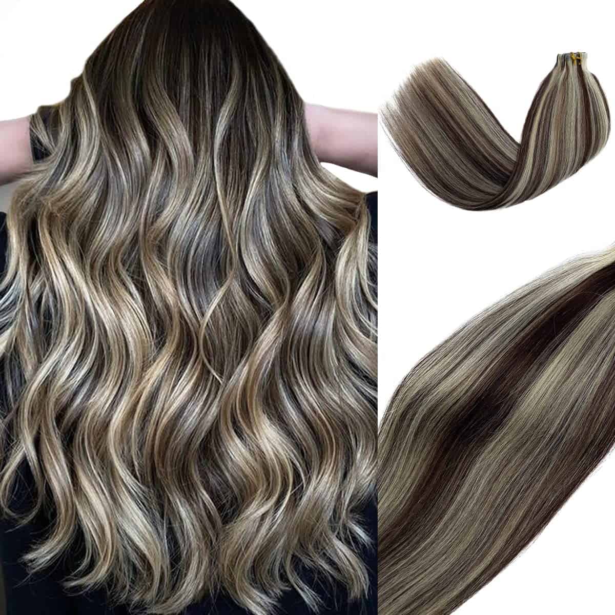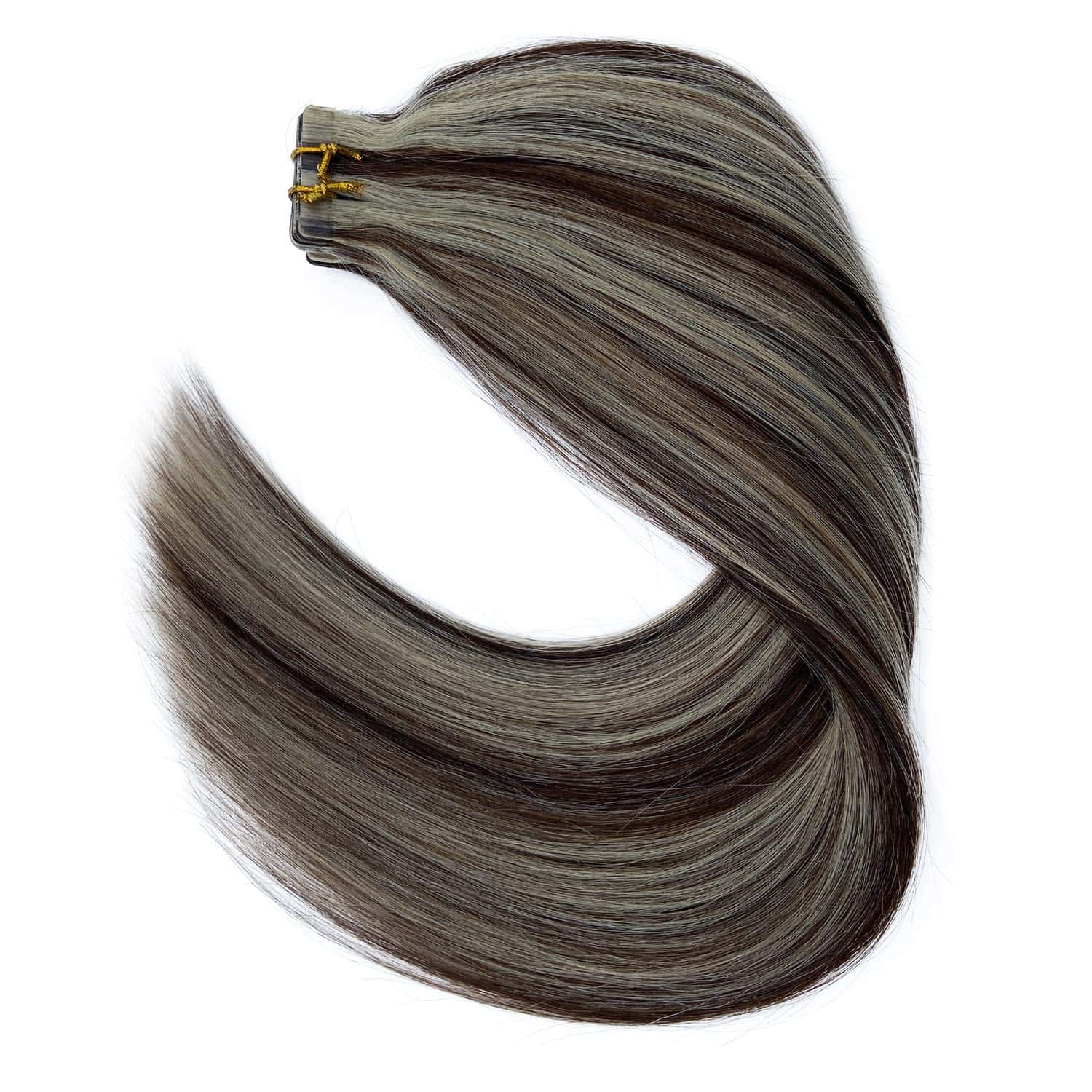 Extensiones de Cabello Tape in Castaño Oscuro con Destellos
