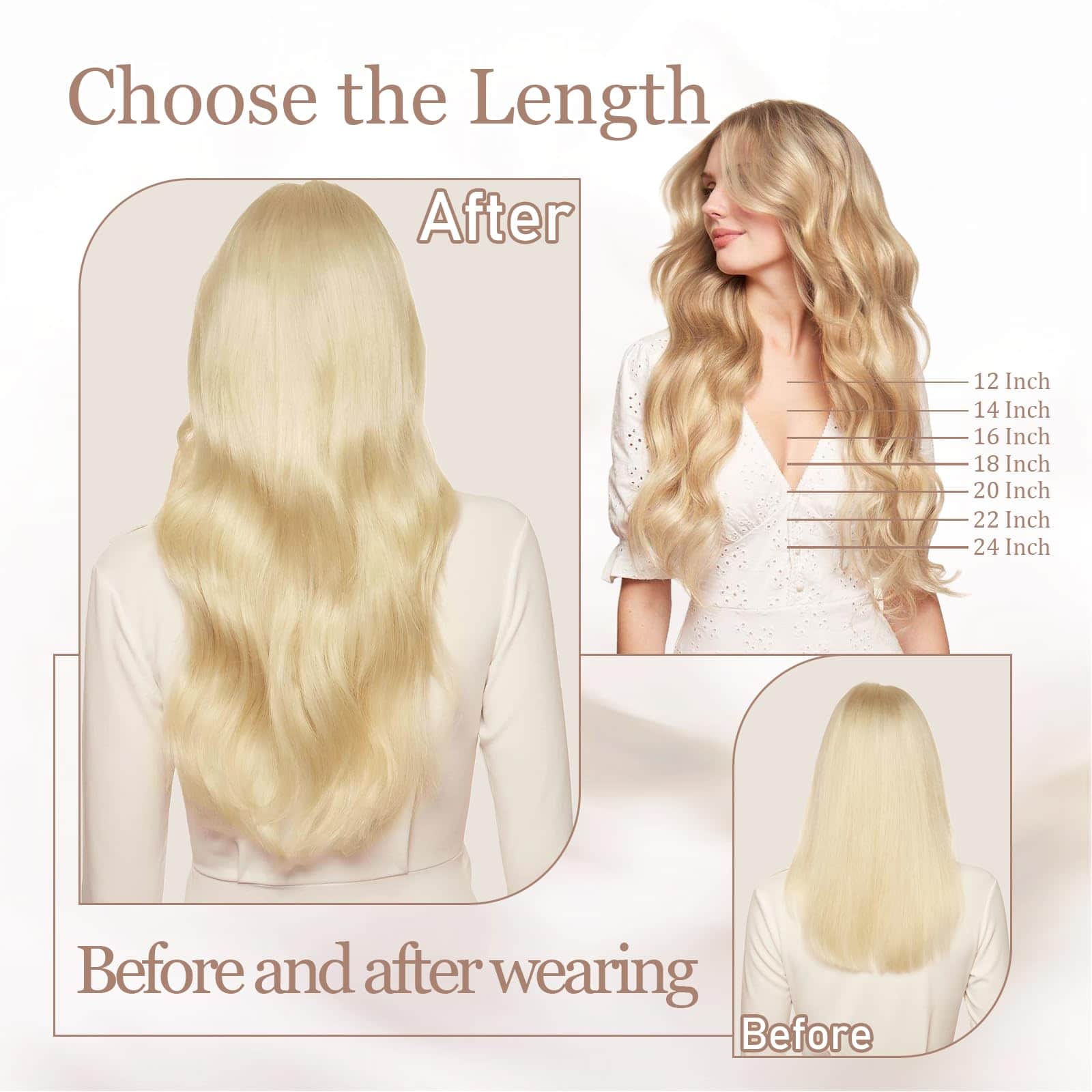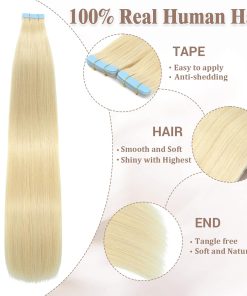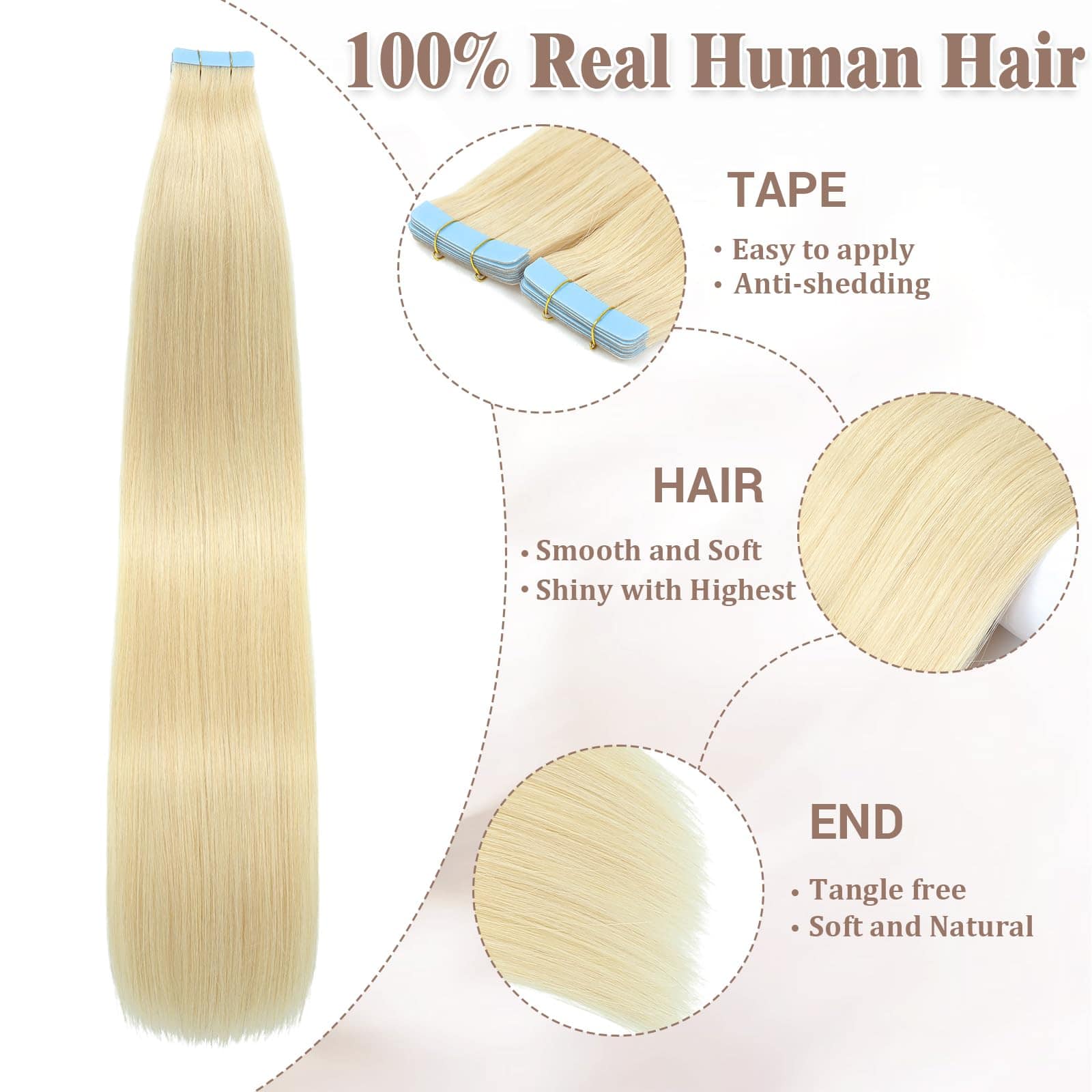 2. Calidad Premium Invisible Tape Ins: Cintas azules hechas en EE. UU., las extensiones de cabello tape in de Lveyan utilizan cinta invisible fuerte que es hipoalergénica e impermeable, la cinta será más fuerte después de un calentamiento moderado. La cinta transparente es imperceptible y se mezcla perfectamente con el cabello. cintas reutilizables, Reemplace las cintas cada 4-6 semanas y es fácil de aplicar o quitar sin dañar su propio cabello.