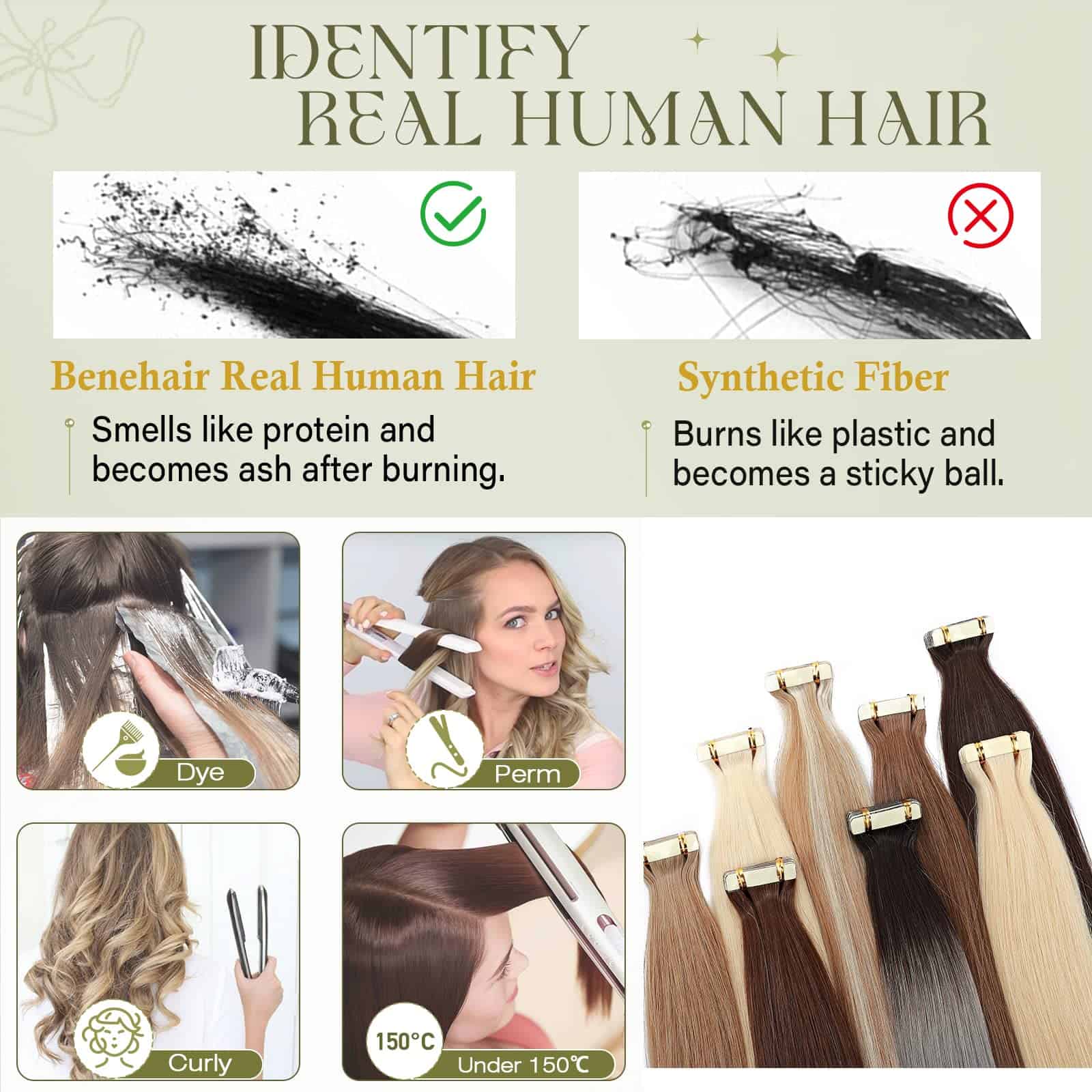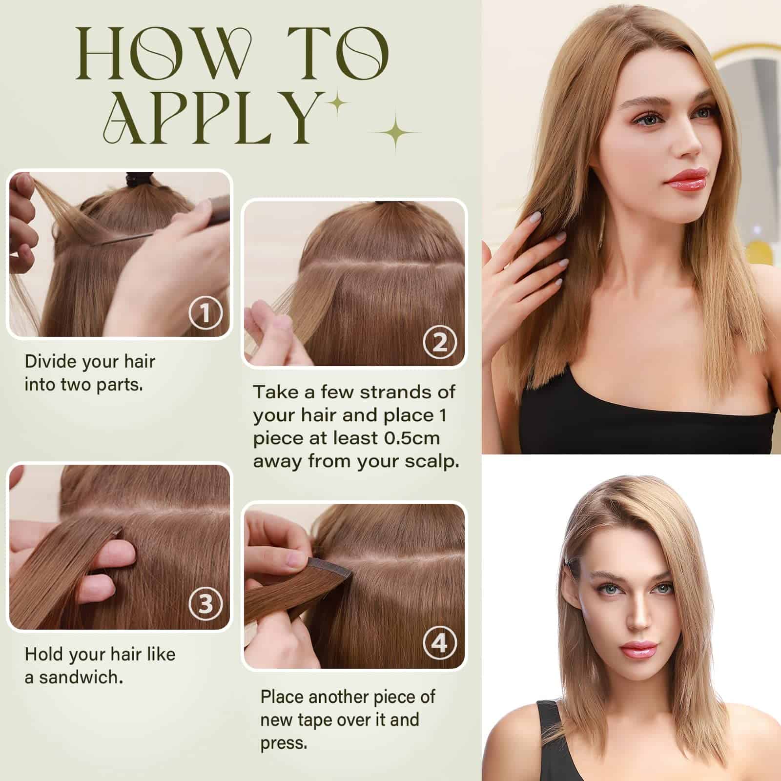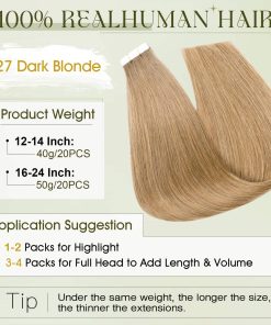 Nuestras extensiones de cabello tape in de Benehair están hechas con cabello humano remy al 100%, lo que garantiza calidad de salón, un cabello sin enredos y sin derrames. Las extensiones se pueden rizar, alisar, tenir o decolorar, lo que las hace versátiles para cualquier ocasión especial. Las cintas invisibles son de la más alta calidad, fáciles de instalar o quitar, y se pueden reutilizar gracias a su diseño duradero. Cada paquete incluye cintas adicionales para que puedas reemplazarlas según sea necesario. Recomendamos ajustar las cintas cada 4 semanas para mantener un aspecto impecable. Las extensiones tape in están disponibles en diferentes longitudes y pesos para adaptarse a diferentes tipos de cabello. Son perfectas para añadir volumen y longitud para un look nuevo y deslumbrante. Además, las extensiones vienen en una variedad de colores y longitudes para que puedas experimentar con diferentes estilos. Ya sea para bodas, graduaciones, vacaciones, fiestas o como regalo, nuestras extensiones tape in son adecuadas para todas las ocasiones. Por favor ten en cuenta que el color puede variar ligeramente de la imagen debido a la luz y al monitor, pero como se trata de cabello humano real, las extensiones se pueden teñir para obtener el color exacto que desees.