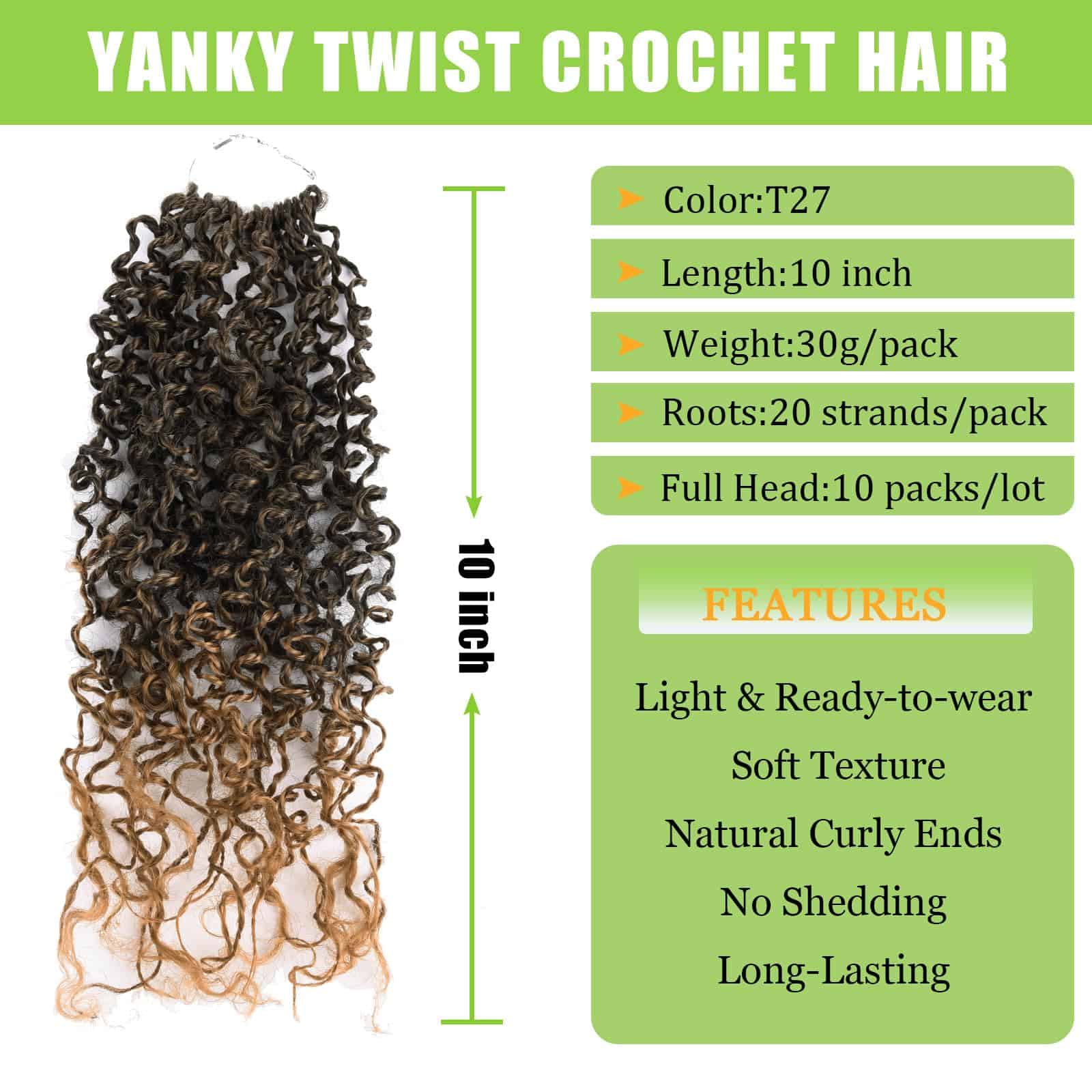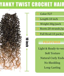 1. Extensiones de Cabello Trenzado de Giro Yanky Twist: Múltiples Colores Para Elegir, 1b, Gris, t27, t30. Actualmente, Hay Dos Tamaños Para Elegir, 10 Pulgadas Y 14 Pulgadas. 20 Piezas/Paquete, 10 Paquetes/Lote. En General, 8-10 Paquetes Son Suficientes Para Hacer un Peinado Completo.