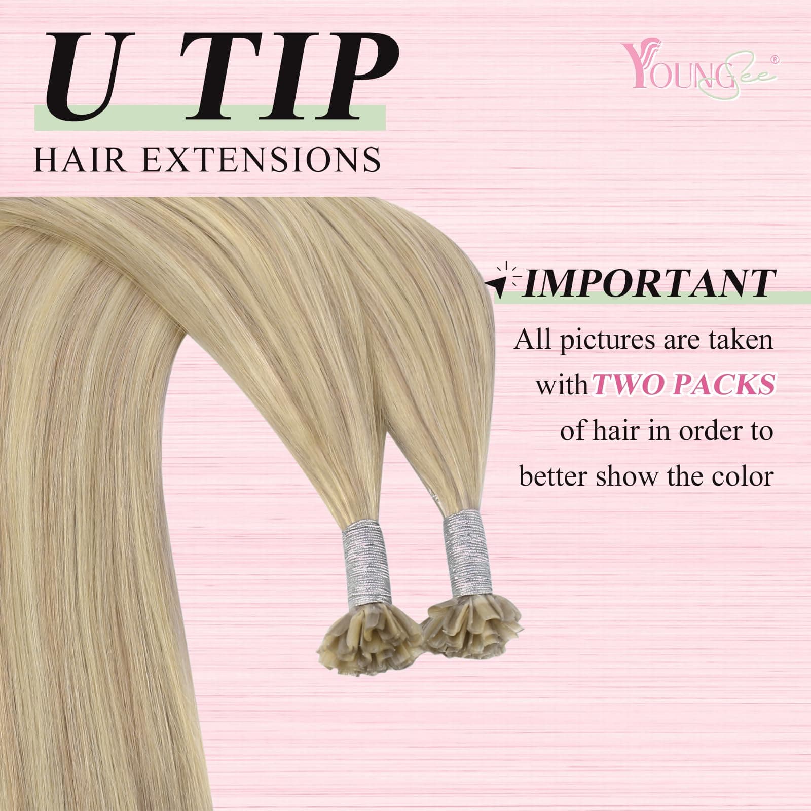 YoungSee ofrece estas extensiones de cabello en forma de U para agregar volumen y realzar tu apariencia. Con un sello en caliente delicado y duradero, estas extensiones de cabello son cómodas y prácticamente invisibles. El cabello humano real brinda un aspecto natural y suave al tacto. Puedes confiar en la calidad y durabilidad de nuestras extensiones de cabello u tip. Con la capacidad de personalizar el color y estilo, puedes lograr el look que siempre has deseado. Nuestra prioridad es la satisfacción del cliente, por lo que estamos aquí para ayudarte en cualquier momento. Atrévete a experimentar con tu cabello y resalta tu belleza única con las extensiones de cabello YoungSee.