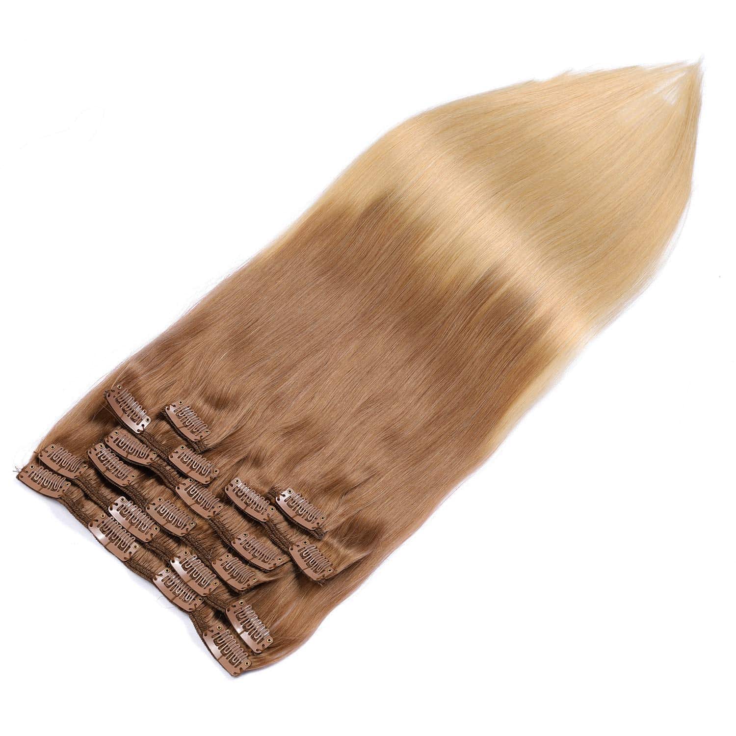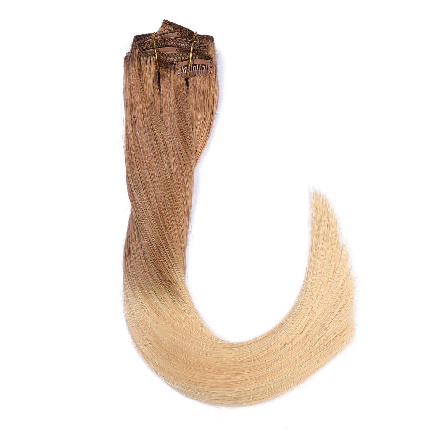 1. Material crudo: Material de cabello de alta calidad y extensiones de cabello humano de doble trama con clip, con ventaja de fábrica, prometemos cabello humano 100% remy con el precio adecuado. Estas extensiones de cabello con clip ya tienen fuertes clips adjuntos, trama de doble cara cosida juntas.