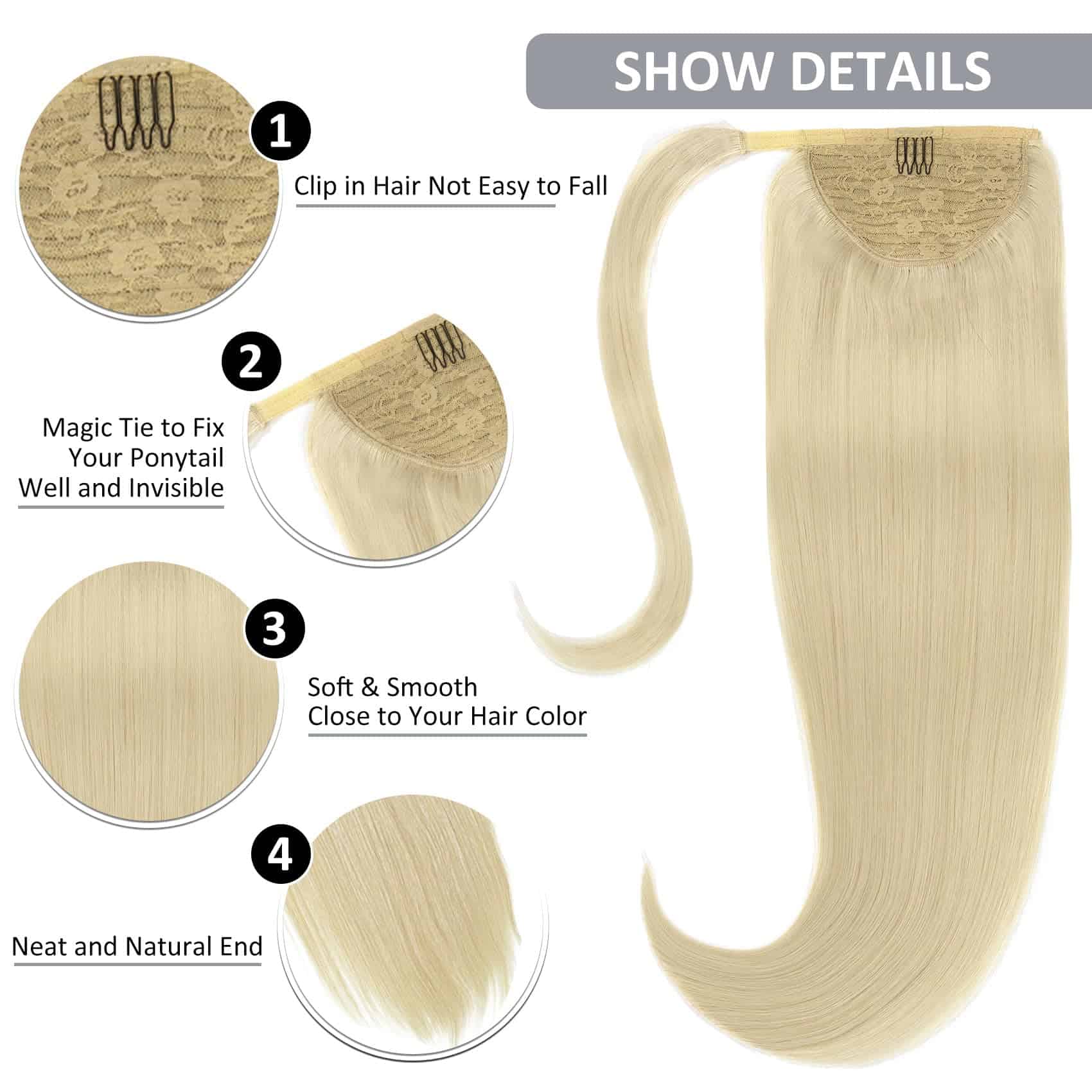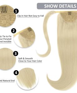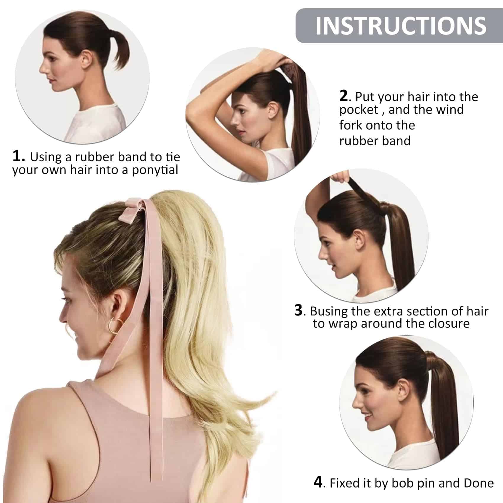 4. Fácil Cabello de Cola de Caballo: Cola de caballo envolvente, fácil de poner y quitar por ti mismo, sin dañar tu propio cabello. Es seguro y cómodo para llevar todo el día. Puedes hacer diferentes estilos, como cola de caballo alta, cola de caballo baja, cola de caballo media alta, media cola de caballo.