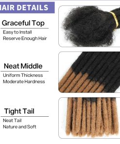 Las Extensiones de Dreadlock de Cabello Humano ofrecen ventajas como ser ligeras, fáciles de instalar, completamente hechas a mano, verdaderas a la longitud y naturales. Material de calidad hecho con cabello humano africano rizado, suave, ligero, teñible y rizante. Fáciles de instalar con colas esponjosas que se pueden agregar fácilmente al cabello existente para agregar longitud o reparar dreadlocks rotos. Adecuadas para el uso diario, viajes, fiestas, actuaciones, etc. Incluye herramientas gratuitas para instalar las extensiones de dreadlocks.