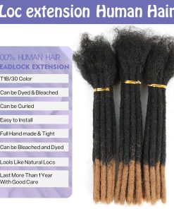 Extensiones de Dreadlock de Cabello Humano totalmente hechas a mano para hombre/mujer. Pueden ser teñidas y rizadas. Ligero, fácil de instalar, verdadero a la longitud y natural. Sin enredos, sin caídas. Apto para todo tipo de piel. Puede durar más de 12 meses. Puede ser lavado normalmente y es seguro para nadar.