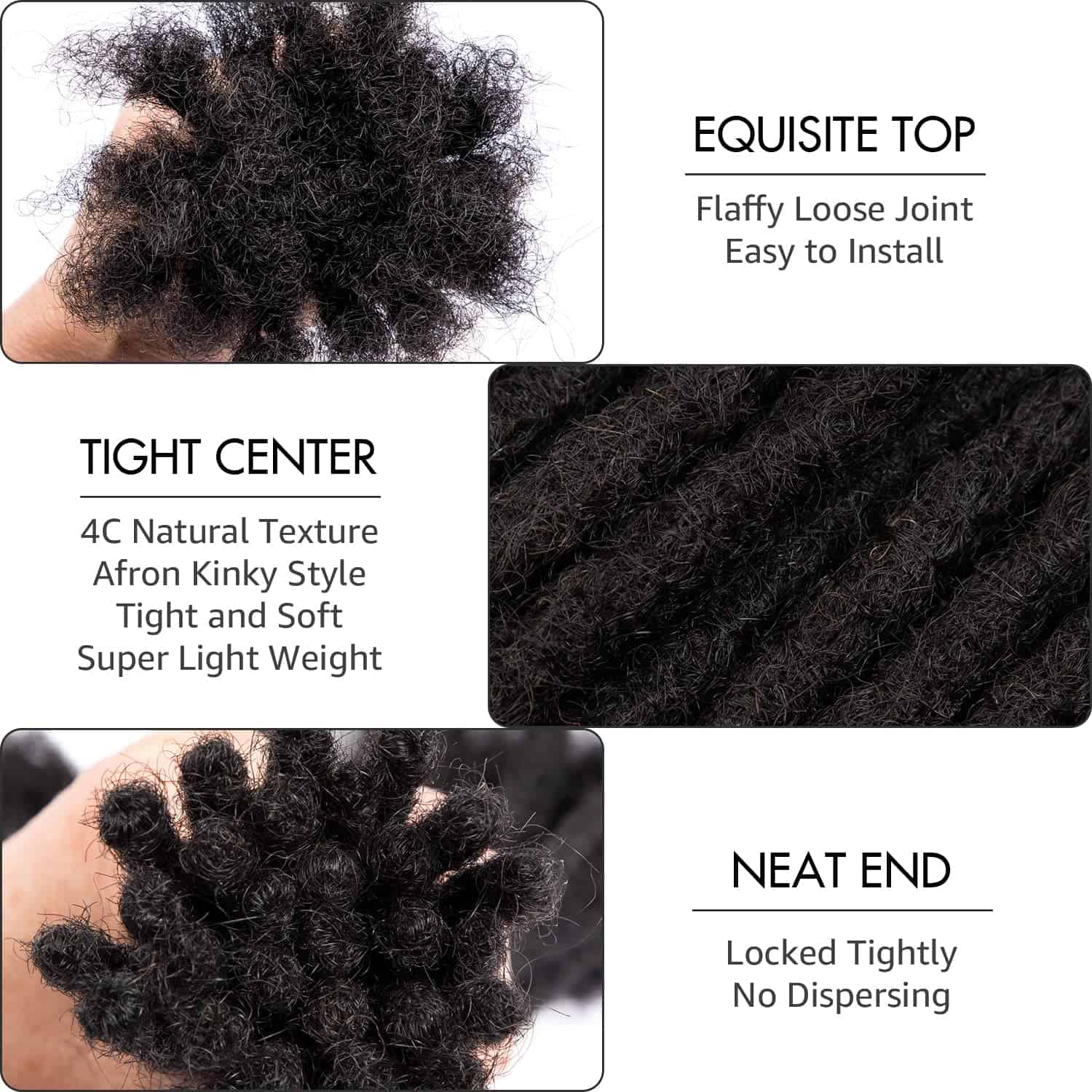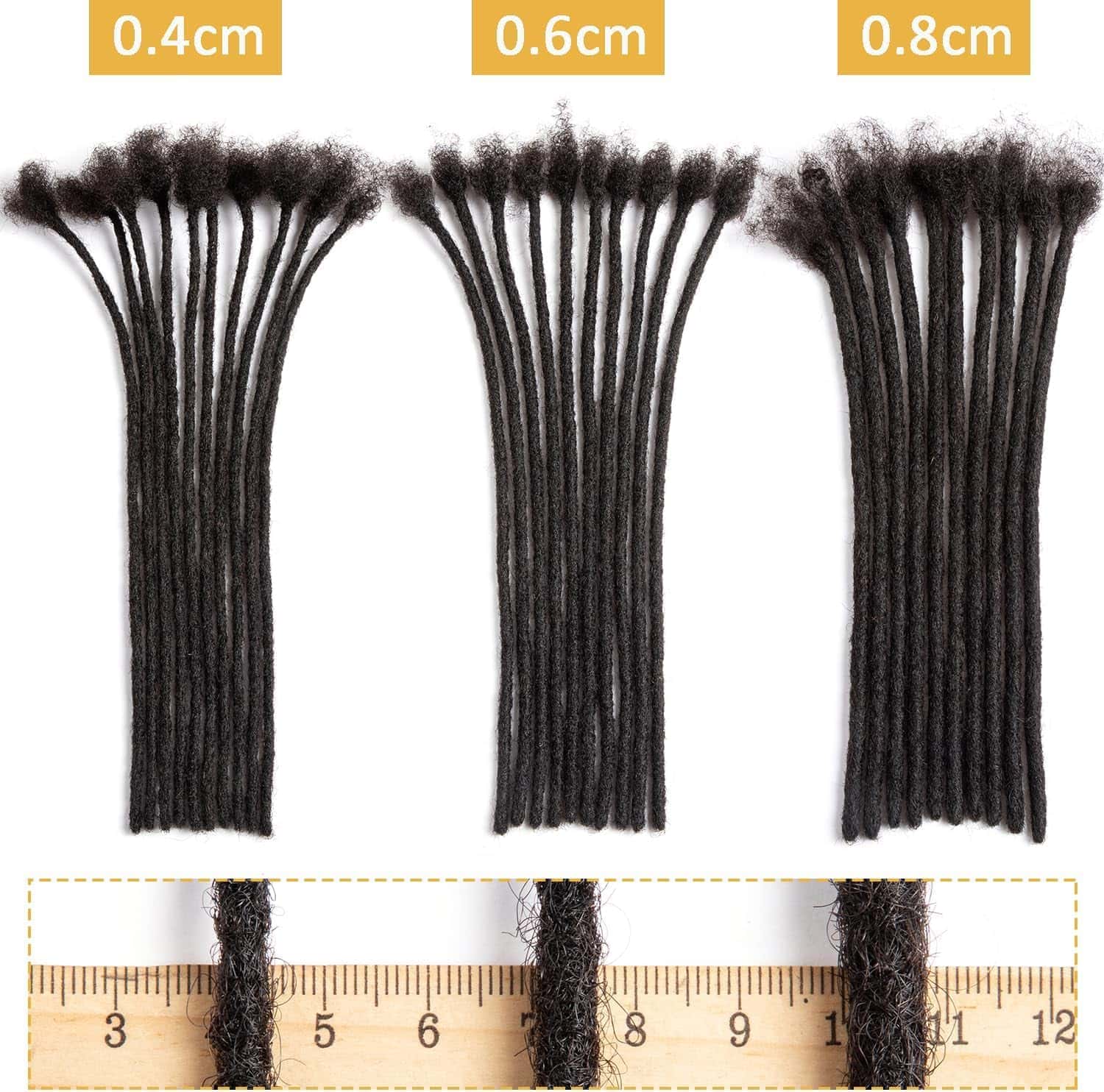 Prueba de Quemado Usa un encendedor para verificar que las extensiones de dreadlocks sean de cabello real, el cabello tiene el olor de la proteína quemada, y los residuos se pueden moler en polvo Apretado y Rígido Las rastas hechas a mano están hechas de mechones afro kinkys, si las rastas son demasiado esponjosas y suaves, su vida útil se reducirá considerablemente, las rastas se romperán y tendrás que usar mechones para arreglarlo. El uso y lavado repetidos lo harán más suave. Detalles: Nombre: Extensiones de Rastas de Cabello Humano 100% Hechas a Mano. Grosor: 0.4cm, 0.6cm y 0.8cm. Ocasionalmente puede haber una diferencia debido a la totalidad hecha a mano. Material: Mechones Afro Kinkys Bulk de 100% Cabello Humano para Dreadlocks. Color: 1B, 27, 30, 613, Bug, T1B/27, T1B/30, T1B/613, T1B/Bug Longitud: 6 – 18 Pulgadas Paquete: Locs de Cabello Humano Real con Ganchos/Agujas de Dreadlocks de Calidad y Peine de Cola de Rata Aviso: 1. El color a veces puede ser un poco diferente a las fotos debido a la configuración de color de su monitor de computadora u otras razones. 2. Siéntase libre de enviarnos un mensaje, Nuestro equipo siempre está aquí para ayudar. Haremos nuestro mejor esfuerzo para lograr su satisfacción.