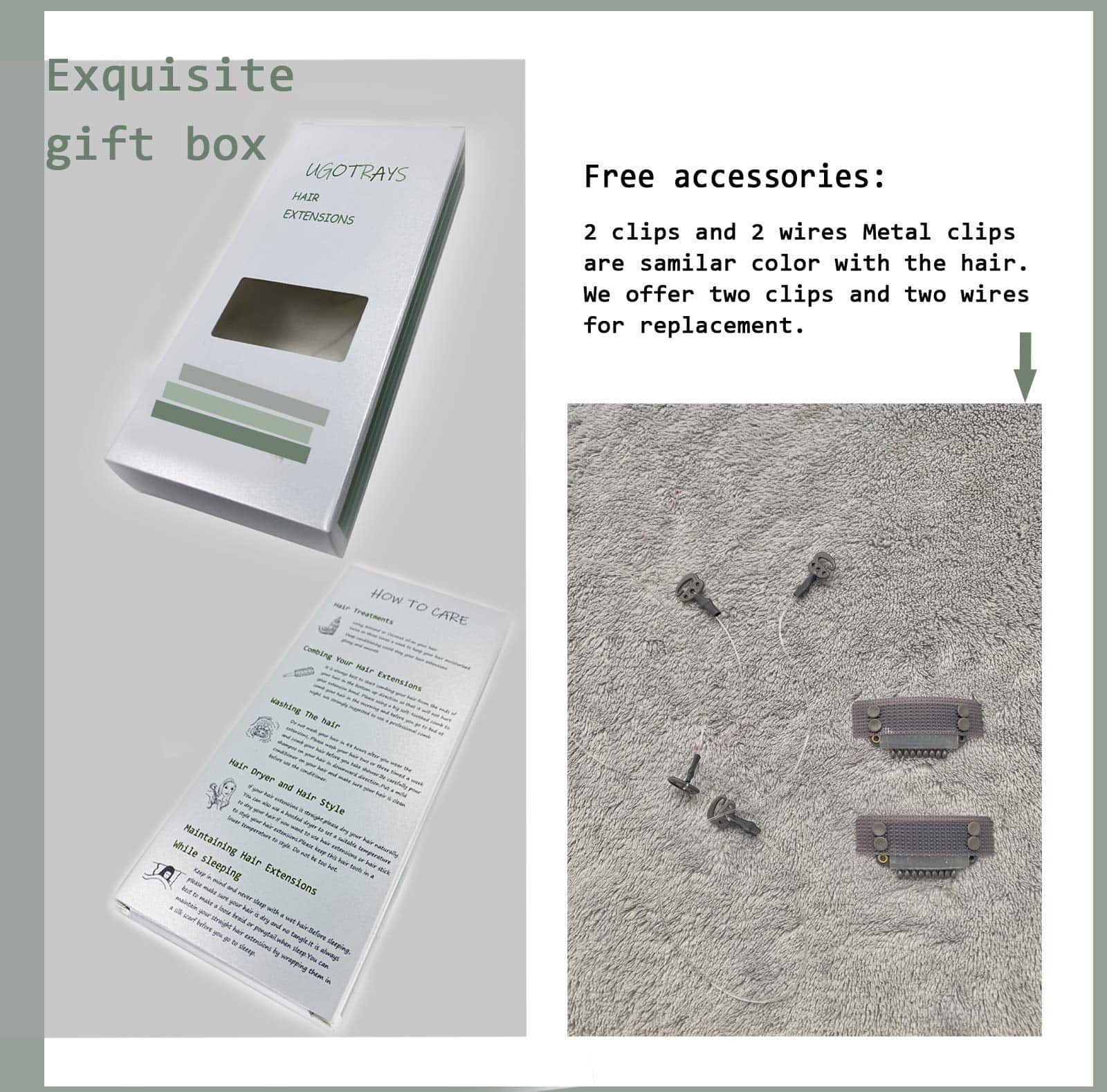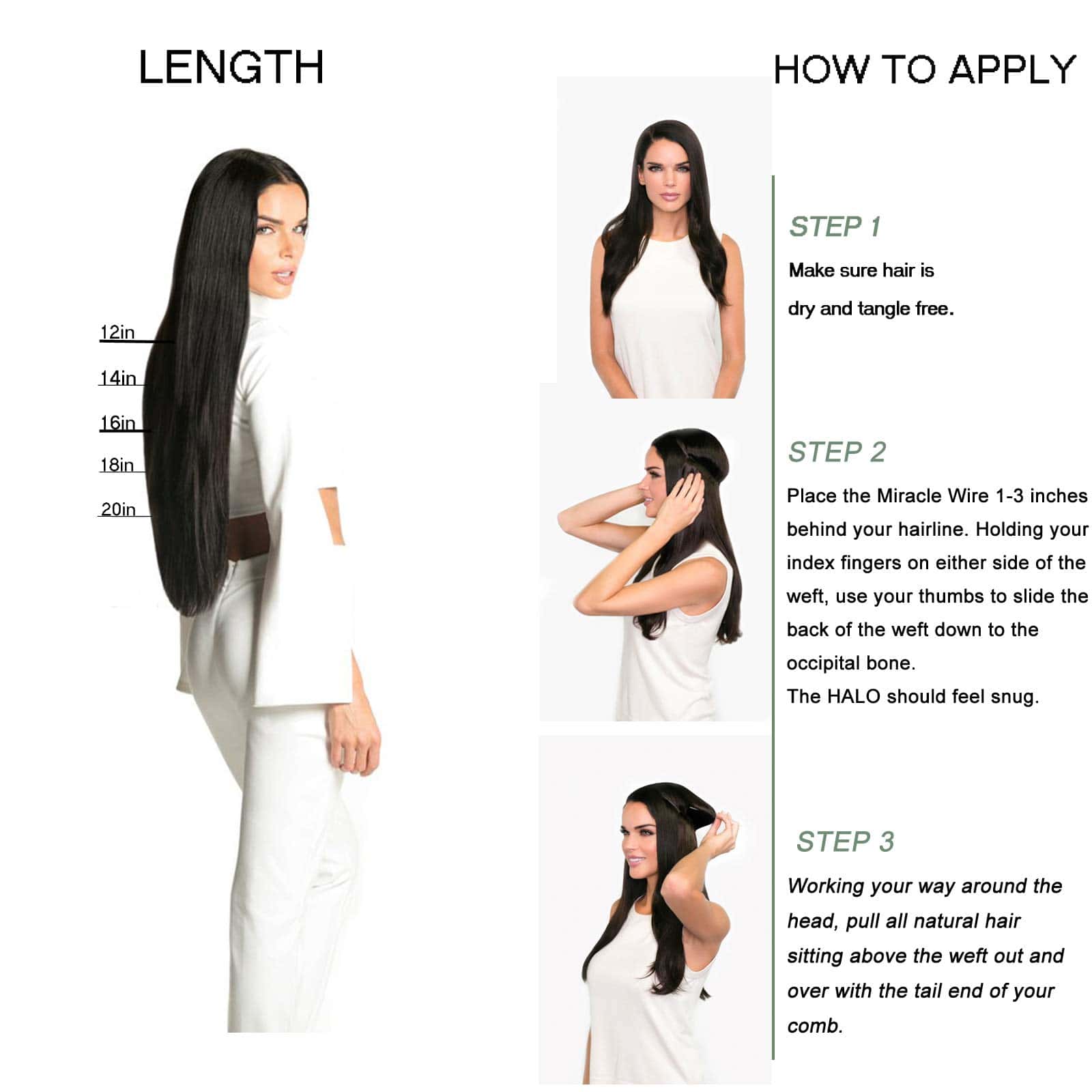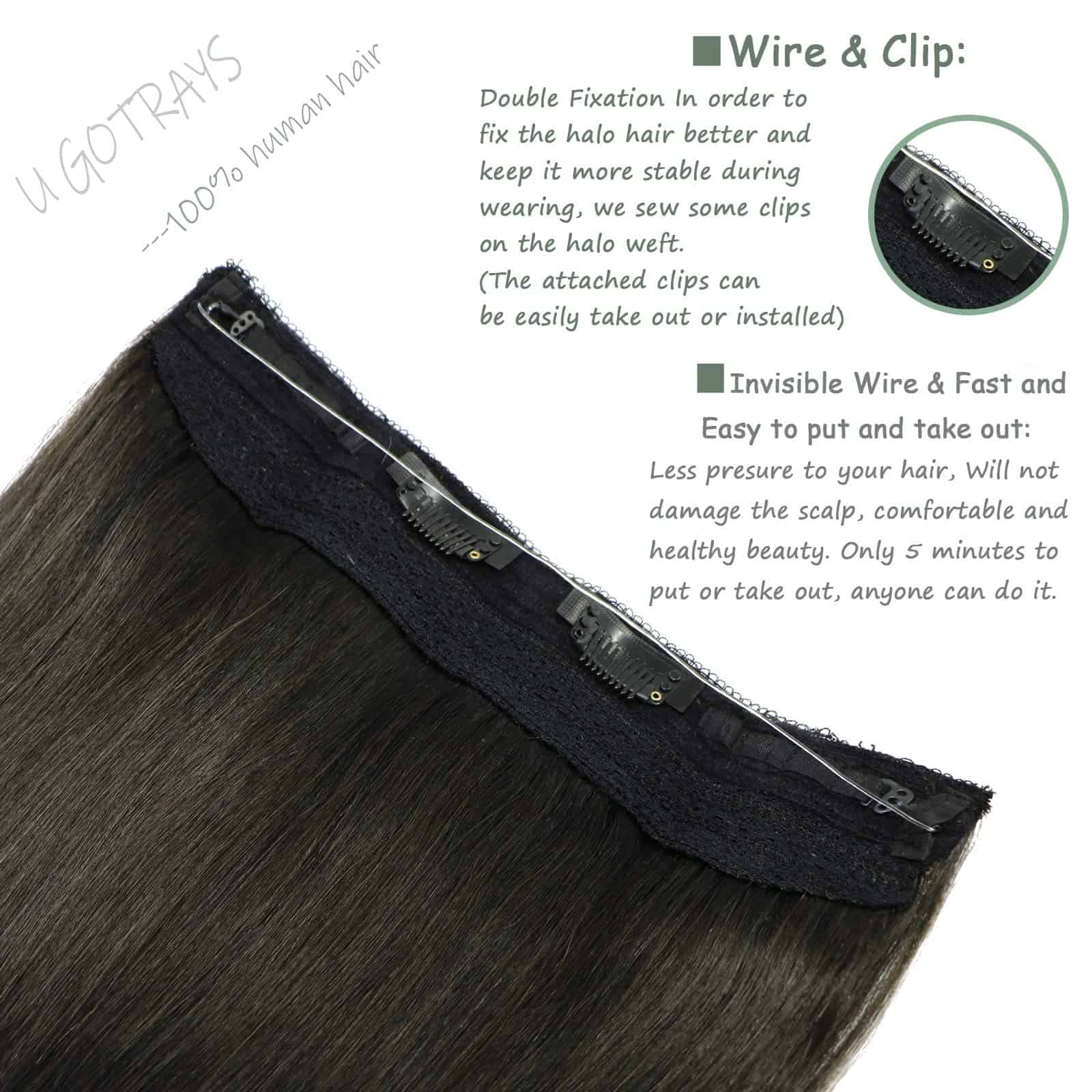 Extensiones de Pelo Recto de Alambre de 12 pulgadas Negro