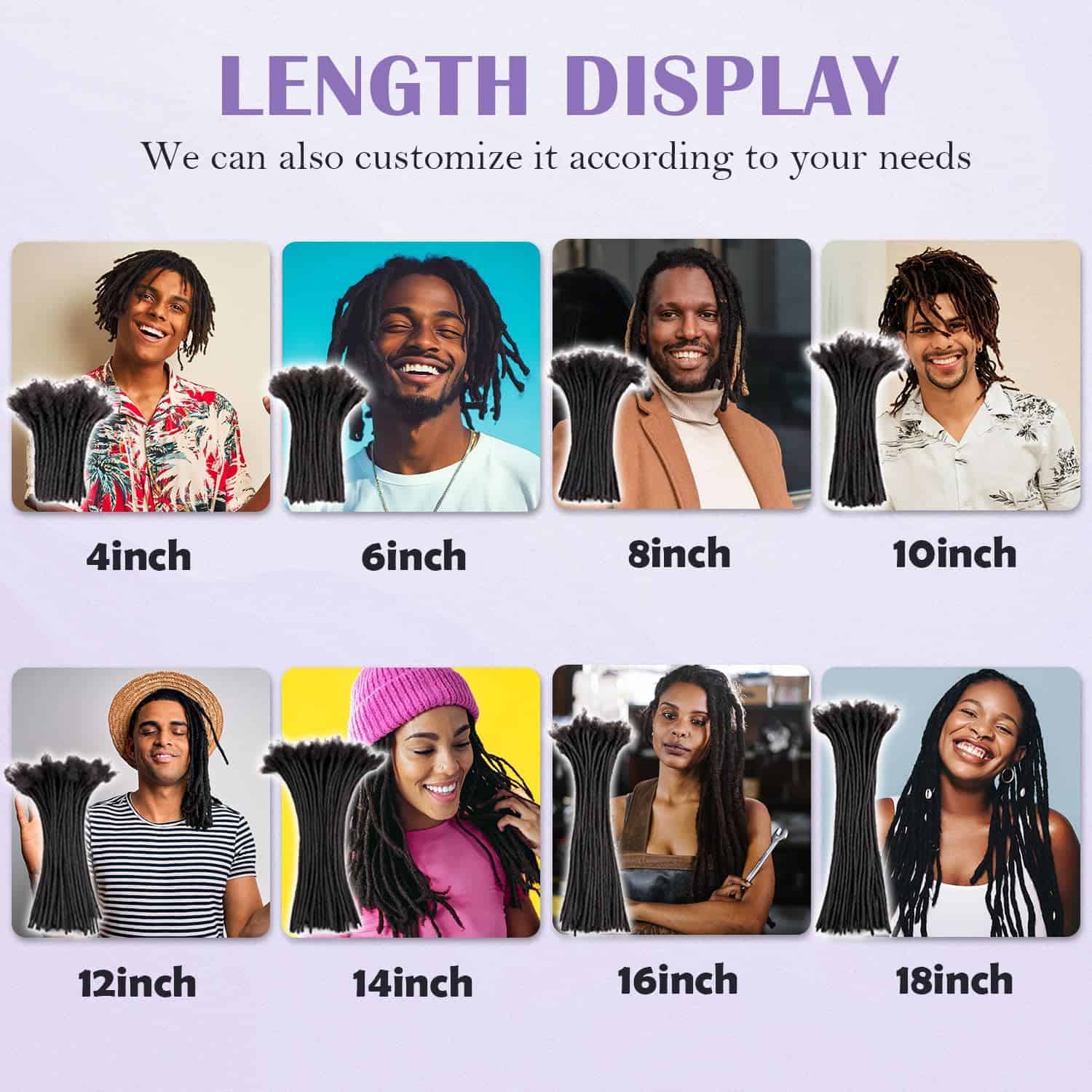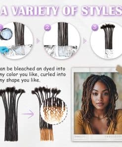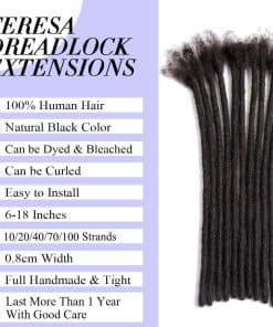 4. Opciones de extensiones de rastas de cabello humano: 10, 20, 40, 70, 100 mechones/pack con aguja de crochet para rastas y peine. Normalmente, de 40 a 70 rastas pueden hacer una cabeza completa. Si necesitas personalizarlas, contáctanos. 5. Extensiones de rastas permanentes hechas a mano completas, calidad adecuada, sin derrames, sin olor, sin enredos. Sólo requieren limpieza y mantenimiento regular, solo tenemos que tratarlas como nuestro propio cabello, pueden durar mucho tiempo.