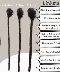 Extensiones de rastas de cabello humano real 100% de alta calidad de la marca LinkMai. Cada pack incluye 20 hebras de extensiones de rastas, con longitudes que van desde 8 hasta 18 pulgadas y anchos que oscilan entre 0.2 y 1 cm. Estas extensiones están hechas a mano para garantizar una durabilidad excepcional y un acabado premium. El cabello humano utilizado proporciona una textura suave y realista, lo que permite que se mezcle de forma natural con el cabello existente. Además, estas extensiones son versátiles y pueden ser teñidas, decoloradas y rizadas, lo que permite una amplia variedad de estilos de rastas personalizados. ¡No dudes en explorar los diferentes tamaños y colores disponibles en nuestra tienda para encontrar la combinación perfecta para ti!