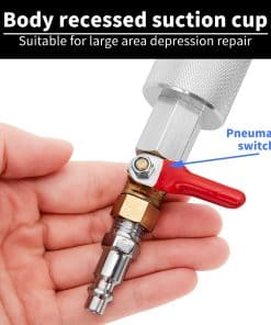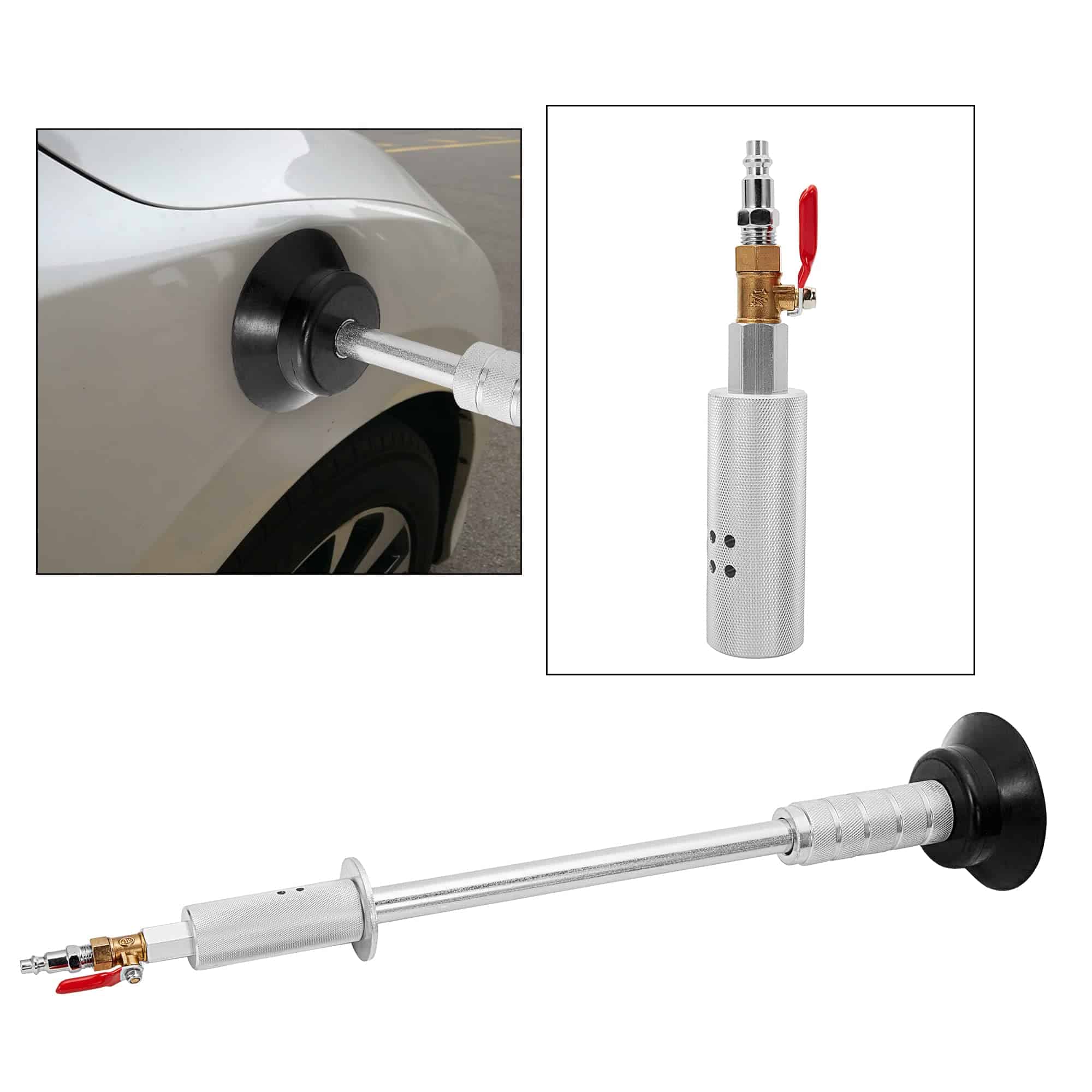 Cómo usar Herramientas de Reparación de Autos 1. Asegúrese de que la abolladura esté lisa y libre de polvo antes de trabajar en ella. 2. Antes de usar las ventosas, caliente las depresiones con una pistola de calor o vierta agua caliente sobre ellas. 3. Después de calentar el área abollada, coloque rápidamente la ventosa en la abolladura del coche y jale hacia afuera horizontalmente.
