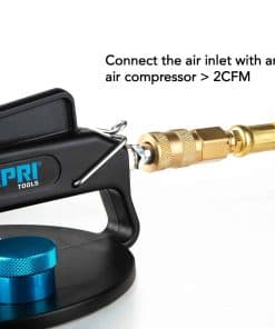 El extractor de aire de freno funciona mediante el uso de aire comprimido para el sistema venturi incorporado y produce un vacío para sangrar y enjuagar los frenos hidráulicos y embragues. El set incluye 1 pieza de manguera de silicona de 40 pulgadas con adaptador de goma universal. Diseñado para adaptarse a la mayoría de los ajustes de purga de frenos de vehículos y para usar con la mayoría de los sistemas de frenos estándar y ABS.