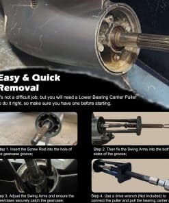 Este Extractor de carcasa de cojinete inferior es ideal para la mayoría de los engranajes de 115 hp y superior, se ajusta perfectamente para Yamaha Johnson Evinrude Honda Mercruiser Mercury (Nota: No es compatible con Verado). Sus Brazos Ajustables pueden girar y pivotar para adaptarse a la mayoría de los engranajes en diferentes unidades inferiores de motor fuera de borda y motor dentro/fuera. La cabeza de rodamiento de bolas está diseñada con roscas ACME resistentes para reducir la fricción y proporcionar más potencia de extracción. Hecho de acero de alta calidad y alta resistencia, previene la corrosión y el óxido, resistente al desgaste e impacto, resistente y duradero. ¡Compra con confianza en Bonbo!