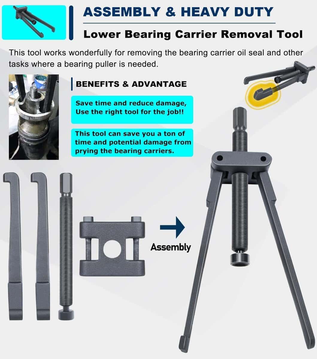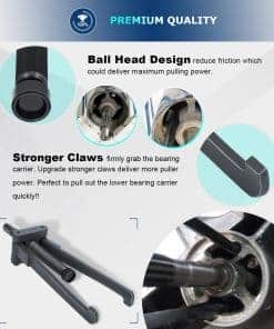 3. BENEFICIOS — Ahorra tiempo y no más palancas contra las superficies del sello. Elimina los cojinetes inferiores más difíciles sin esfuerzo y sin dañar los cojinetes. El diseño de cabeza de bola reduce la fricción, lo que podría ofrecer la máxima potencia de extracción.