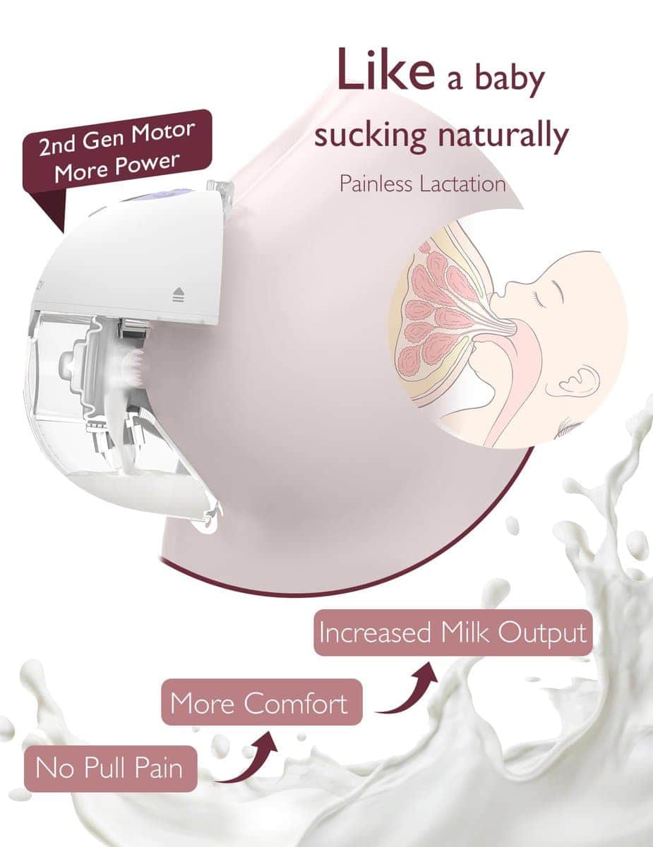 2. Lactancia a nivel de SPA – M5 breast pump el nuevo concepto «Boca de bebé» está estructurado como un bebé succionando en un ángulo horizontal, lactancia sin dolor que produce más leche. Con una brida doble sellada y un diseño ergonómico de arco de mama, se adapta de forma más cómoda.