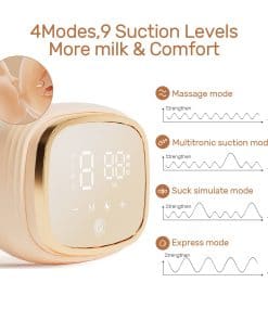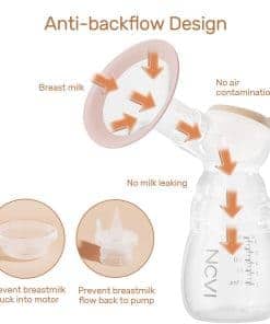 El extractor de leche eléctrico doble NCVI 8102 viene con 4 modos y 9 niveles. El modo de masaje se utiliza para estimular los senos. Para producir leche normal, puedes utilizar succión multitrónica, modo de succión estimulante o modo de extracción rápida. Las mamás pueden elegir la mejor intensidad de bombeo utilizando el modo de confort. El sacaleches viene equipado con pantalla LCD, panel táctil sensible, fácil de operar. Diseño de bajo ruido de 40 dB, el bebé no se despertará cuando las mamás estén extrayendo leche. La batería de litio mejorada de 4400mAh permite que funcione durante hasta 180 minutos con una carga. Equipado con luz nocturna, que hace que sea más conveniente para las mamás extraer leche a medianoche. El diseño anti-retorno del extractor de leche eléctrico es impecable, no te preocupes de que la leche pueda dañar la máquina. La válvula de prevención del retorno de leche detiene el flujo de leche de la botella al cuerpo y el diafragma de silicona bloquea el flujo de leche hacia la bomba. El componente exterior del manguito está envuelto con silicona suave, que tiene un buen sellado. Proporciona un sistema interno cerrado, mejora la succión para que la mamá pueda extraer eficazmente sin incomodidad. El extractor de leche eléctrico NCVI está hecho con silicona de grado hospitalario, libre de BPA. Cada componente puede desmontarse y ensamblarse fácilmente. Aparte de las partes eléctricas, todas las piezas desmontables también se pueden ensamblar y desmontar en un lavavajillas. Viene con 2 botellas y tapas, 10 bolsas de almacenamiento de leche materna, 6 almohadillas de lactancia.