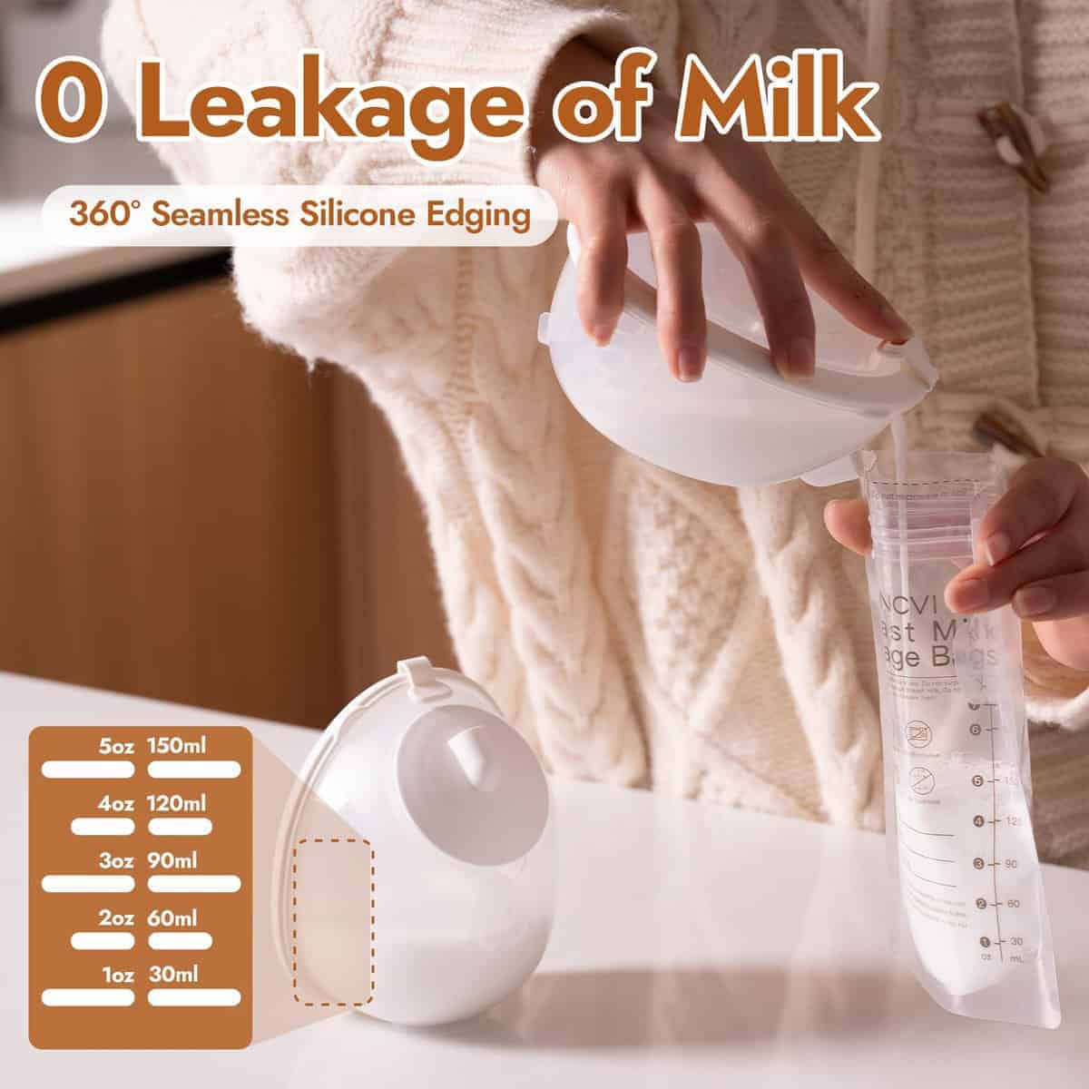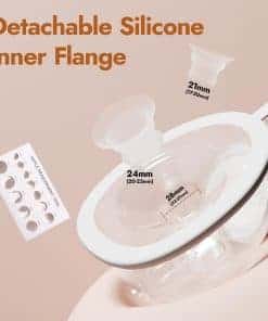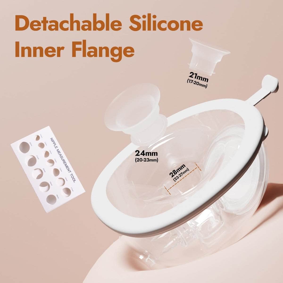 2. Copas anti fugas, Triple Opciones de Ajuste No más sorpresas mojadas. Las copas de doble sellado previenen fugas, con un ajuste estándar de 28 mm más inserciones de silicona alimentaria de 21 mm y 24 mm diseñadas para pezones de 17 a 26 mm. ¡La comodidad no debería ser un compromiso!