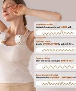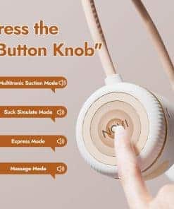 1. Diseño de banda para el cuello, más ligero ¡Di adiós a los tirones! El diseño de bomba portátil con banda para el cuello con una copa ultra ligera de 100g alivia la presión descendente en el pecho sin manos, sin problemas, menos gravedad para una experiencia de succión cómoda.