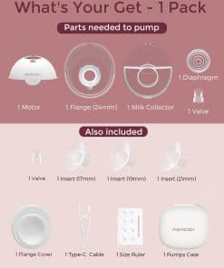 4. Personalizado para ti: El extractor de leche Momcozy M5 con 4 tamaños 17/19/21/24mm, se adapta a diferentes formas de pecho. Hecho de silicona de grado alimenticio libre de BPA, es seguro para ti y tu bebé. Las piezas mínimas son más fáciles de usar y limpiar, para que las mamás puedan pasar su vida de alimentación sin preocupaciones.