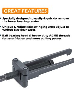 Extractor de Porta Cojinetes Inferiores para Yamaha Johnson Evinrude Mercury Honda Mercruiser, Apto para la Mayoría de los Engranajes de 115hp y Superior con Brazos Ajustables. Este extractor de porta cojinetes inferiores está diseñado para adaptarse a una amplia gama de modelos de motores marinos. Con brazos únicos y ajustables que se pueden adaptar a diferentes tamaños de cajas de engranajes, permite quitar de manera eficiente y sin daños el porta cojinetes inferiores de las unidades inferiores. La cabeza de rodamiento de bolas y los hilos ACME de alta resistencia garantizan cero fricción y una potencia de extracción óptima. Fabricado con todos los componentes de acero CNC Billet, este extractor es resistente a impactos, sólido y duradero, con una excelente resistencia al óxido y la corrosión para años de uso sin problemas. Complete su kit de herramientas marinas con este extractor de porta cojinetes inferiores de alta calidad y disfrute de la garantía de 1 año y el servicio al cliente accesible para respaldar su inversión.