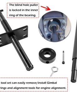 Este set es imprescindible para cualquier propietario de Mercruiser Alpha, Alpha 1, MR, Bravo, OMC Cobra y Volvo. Incluye todo lo que necesitas para quitar e instalar cojinetes de cardán y alinear el motor de manera profesional. Los pernos oculares permiten una fácil colgada de las herramientas de alineación, mientras que el extractor de agujero ciego garantiza una extracción suave y sin problemas de los cojinetes. Además, el acero al carbono de alta calidad garantiza una longevidad impecable. ¡No pierdas la oportunidad de adquirir este set de herramientas de calidad para tu embarcación!