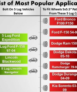 El set de adaptadores de rueda se utiliza para convertir un patrón de pernos de cubo de 5x135mm para adaptarse a ruedas con pernos de 5×5.5 (139.7mm). También espaciará tus ruedas por 1.5 pulgadas para ayudarte a obtener el espacio suficiente para neumáticos y llantas más anchas. Mecanizado CNC con artesanía de precisión utilizando aluminio de calidad aeronáutica 6061 T6, cuenta con una alta capacidad de carga y resistencia a la corrosión. Los pernos de alta calidad están preinstalados y las tuercas de montaje de extremo abierto con tamaño de hilo 14×2 están incluidas. Se venden en pares para 2 ruedas. Ordena 2 pares para las 4 ruedas.