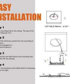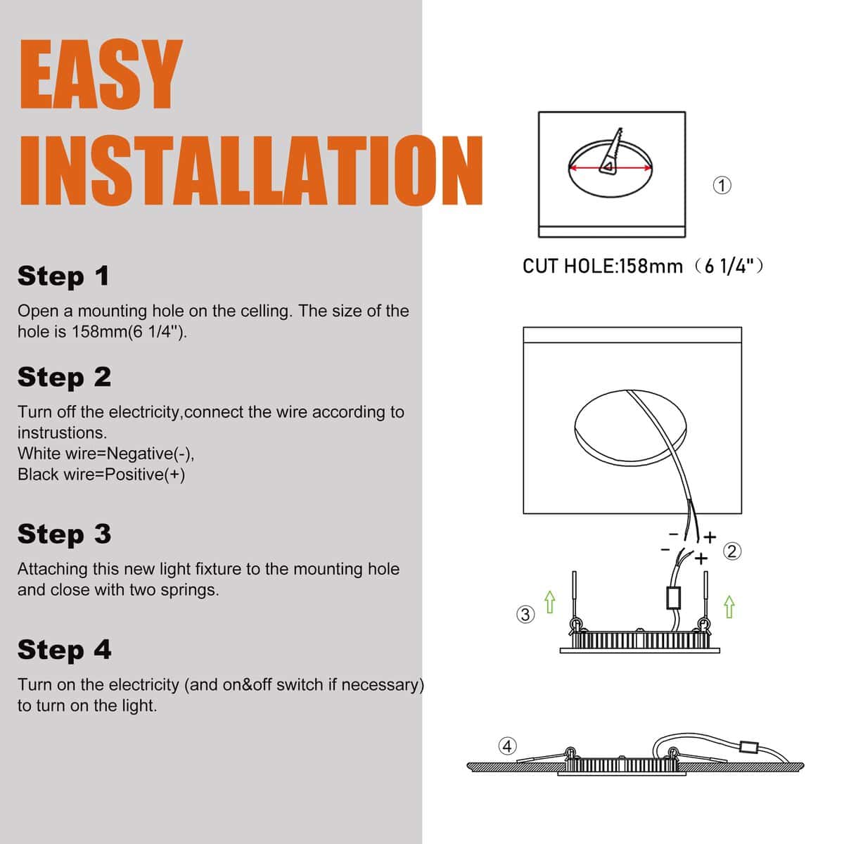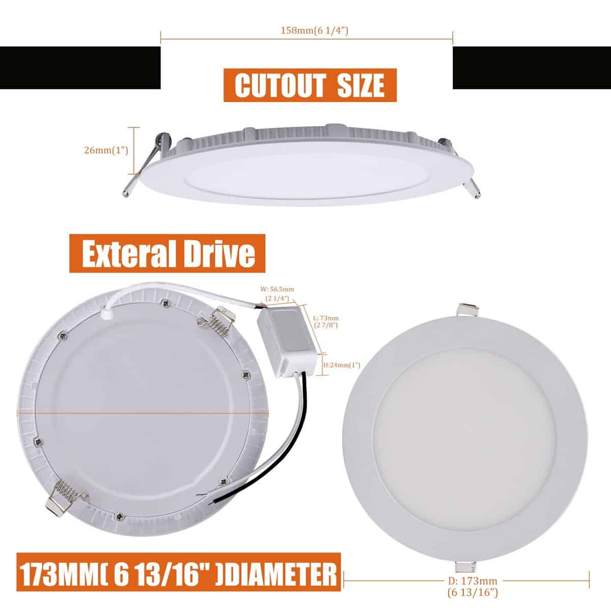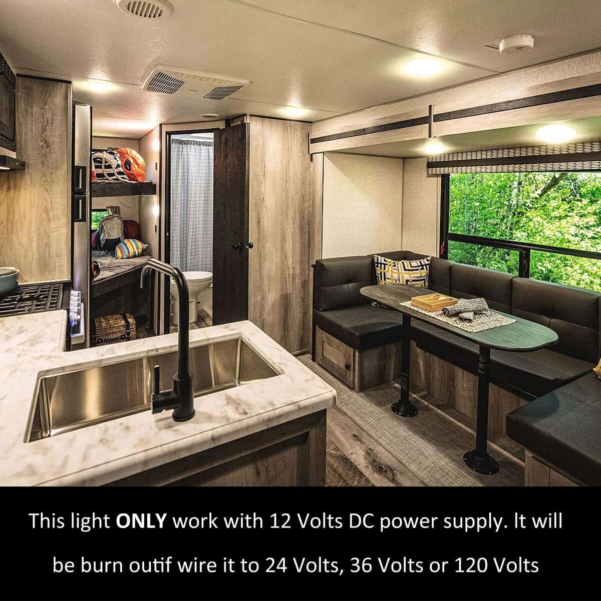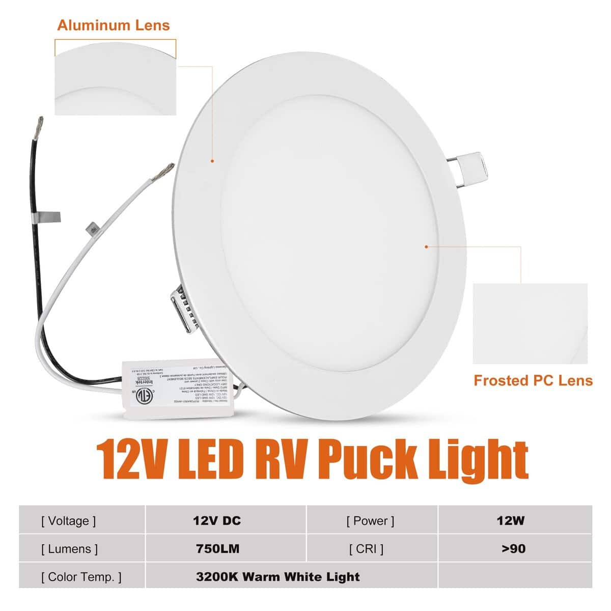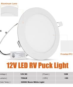 Luz interior de RV de 12V diseñada para 12V DC. Excelente reemplazo de luz LED de montaje empotrado para RV, autocaravana, caravana, remolque de viaje, barco, marino. Diseño súper delgado que se ajusta en lugares estrechos en el RV como debajo del gabinete, baño, cocina. Si lo usa en casa (120 voltios CA), por favor cablee este accesorio a un transformador adecuado (no incluido). El paquete de luces de larga duración solo proporciona 12W de potencia para ahorrar energía de la batería de su vehículo. Cada accesorio de luz emite un superbrillo de hasta 750 lúmenes, y luz cálida blanca de 3200K para iluminar su vehículo y proteger sus ojos al mismo tiempo. Diámetro de montaje empotrado fácil: 6-13/16»; Corte (pulgadas): 6-1/4»; Profundidad (pulgadas): 1». Por favor, verifique el diámetro y el agujero de montaje antes de ordenar. El montaje empotrado diseñado proporciona una instalación fácil y segura, y todo lo que necesita hacer es simplemente quitar su accesorio fluorescente antiguo y luego adjuntar este nuevo accesorio de luz al agujero de montaje y cerrarlo con dos resortes. Caja de aluminio completa con buena disipación de calor y anticorrosión. Extendiendo la vida útil de estas luces interiores de RV a más de 50000 horas. Más duradero y delicado que el accesorio de luz de domo de plástico tradicional de RV. Viene con un controlador externo con función de estabilización de voltaje, buena disipación de calor. Tamaño del controlador externo: L 2-7/8» X W 2-1/4» X H 1». Calidad superior y buen servicio al cliente. ¡Pasó la certificación de calidad estándar cETL de EE. UU.! ¡Nos hacemos cargo por completo de nuestras luces de RV y de la insatisfacción del cliente. ¡Garantía de un año!