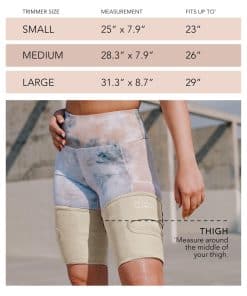 El Trimmer de muslos Sweet Sweat comprime y apoya el área de tus muslos al tiempo que conserva el calor terapéutico. Como resultado, no solo tonificarás y darás forma a tus muslos, sino que también minimizarás la aparición de tirones y distensiones en los cuádriceps e isquiotibiales. Las Fajas de muslo están hechas de neopreno térmico 100% libre de látex, con un revestimiento de nylon en el lado exterior y un diseño contorneado para mayor comodidad. Consejos rápidos: Los productos de neopreno producen un efecto similar al de una sauna en la piel, por lo que es muy importante mantenerse hidratado al hacer ejercicio con las Fajas de muslo Sweet Sweat. Después de cada uso, limpia la faja de muslo con un paño seco. ¡Precaución! Algunas personas pueden ser sensibles a los productos de neopreno. Evita usar la Faja de muslo Sweet Sweat si eres propenso a la dermatitis. Si te sale sarpullido, deja de usarla de inmediato. Importante: Para evitar irritación en la piel y posibles erupciones, limpia la faja de muslo después de cada uso con un paño seco. No uses las Fajas de muslo durante más de 3 horas seguidas. Uso con Sweet Sweat: Para obtener mejores resultados, úsalo en combinación con el Mejorador de entrenamiento Sweet Sweat. Aplica una capa delgada de Sweet Sweat debajo de la faja de muslo antes de comenzar tu entrenamiento. Sweet Sweat funciona con tu frecuencia cardíaca elevada, por lo que debes hacer algún tipo de actividad cardiovascular para activarlo.