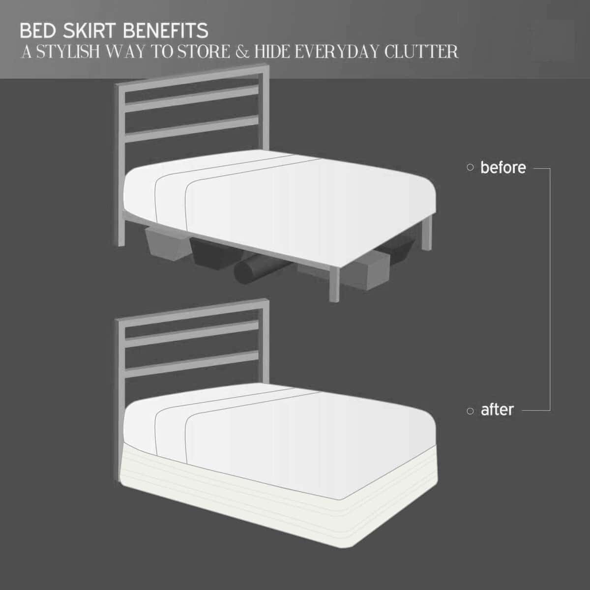 3. TAMAÑO PERFECTO: Nuestra falda de cama tamaño Queen mide 60 x 80 pulgadas con una caída de 14 pulgadas. Adecuada para la mayoría de los tipos de camas. Esta falda de cama puede ocultar perfectamente tu somier o cualquier espacio de almacenamiento debajo de la cama, haciendo que la habitación sea moderna y hermosa, protegiendo las cosas debajo de la cama del polvo.