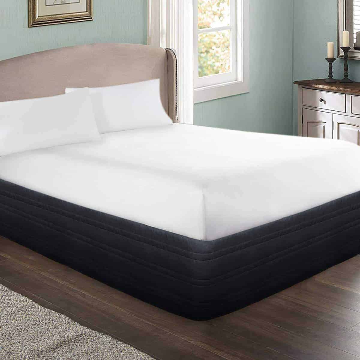 5. NUNCA SE MUEVE: Como nuestra falda de cama con plataforma es de estilo de cobertura de 3 lados, puede permanecer en su lugar muy bien. No transparente como muchas otras faldas de cama. Nuestra falda de cama con volantes siempre se mantiene exactamente donde la colocas y llega hasta el suelo.