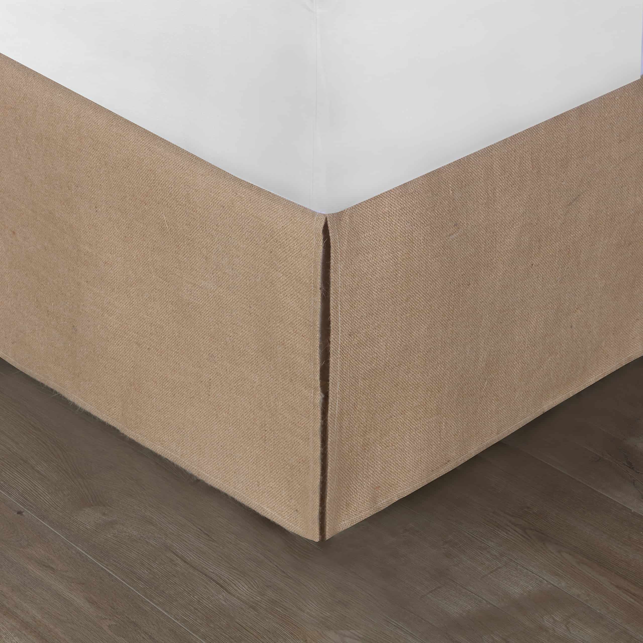 Traiga una vibra más natural y orgánica a su dormitorio con una falda de cama de arpillera rústica. En colores naturales y hecha 100% de arpillera, cada falda de cama está confeccionada con esquinas divididas. Presenta una caída de 15″ de largo. La parte superior es 100% de arpillera con plataforma de poliéster. Limpieza en seco o limpieza localizada solamente. Dimensiones: Twin 39×75″ + caída de 15″, Full 54×75″ + caída de 15″, Queen 60×80″ + caída de 15″, King 78×80″ + caída de 15″.Estilo: Casa de campo