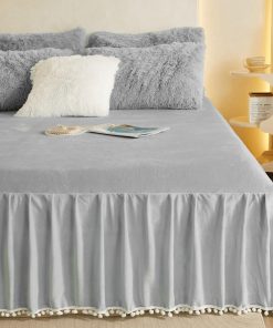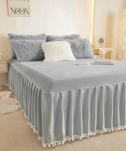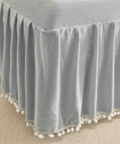 Falda de cama de terciopelo con borlas Pom Pom, falda de