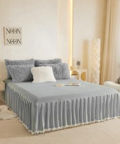 2. Características: La falda de la cama viene con una sábana ajustada en su interior, la sábana ajustada está diseñada con bolsillos en las esquinas profundas, elástico alrededor para acoplarlo a los bordes y hacer que se estire fácilmente y se ajuste a la base del colchón, y el encaje de borlas Pom Pom puede decorar mejor tu habitación dando a tu cama un aspecto romántico de granja.
