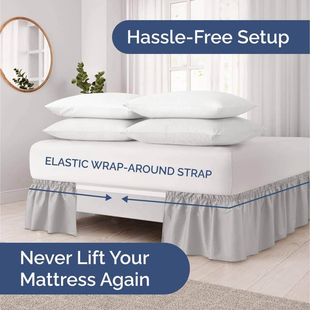Faldón de Cama Ajustable con Volantes – Gris Claro – para