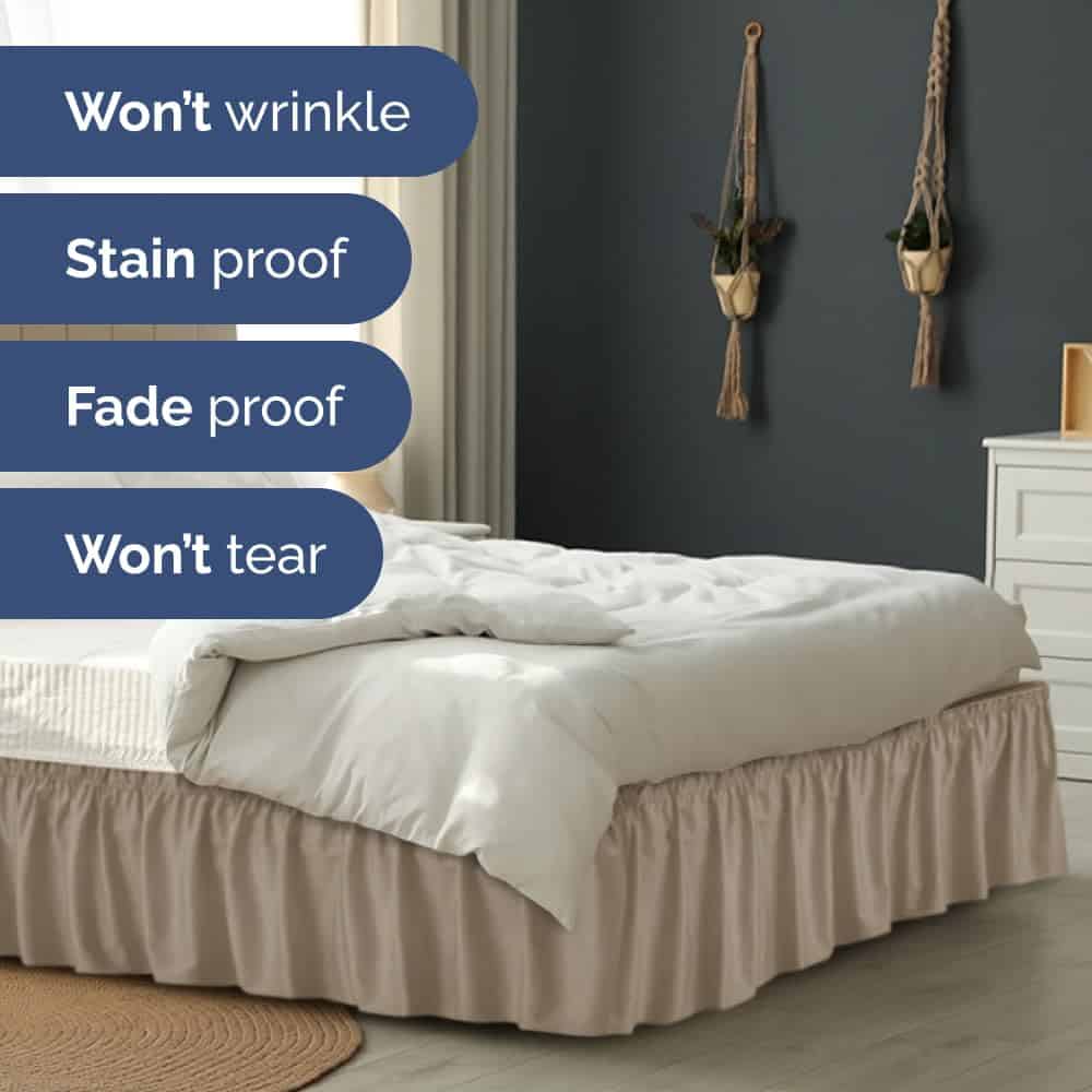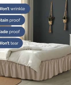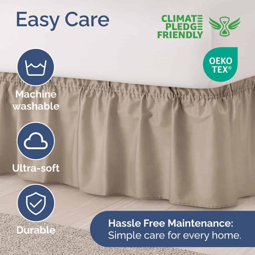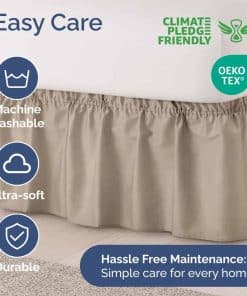 Hecho de microfibra cepillada premium, nuestro faldón de cama tamaño Queen de CGK Linens no se rasgará, desgarrará, desvanecerá o encogerá. El faldón de cama Queen está diseñado para mantenerse en su lugar con la correa elástica actualizada de CGK Linens. La configuración más sencilla: la mayoría de los faldones de cama pueden ser un dolor de cabeza para configurar. No te esfuerces levantando tu colchón por ti mismo. Ponte y quítate el faldón de cama Queen con total facilidad y comodidad, sin necesidad de ayuda. ELIGE TU COLOR: Combina tu decoración con estilo. Nuestro faldón de cama viene en 19 variaciones para decorar tu dormitorio como quieras. LIMPIEZA FÁCIL: Envíar sábanas a la tintorería es un engorro. Mantén limpio tu faldón de cama tamaño Queen simplemente metiéndolo en la lavadora para un lavado rápido.