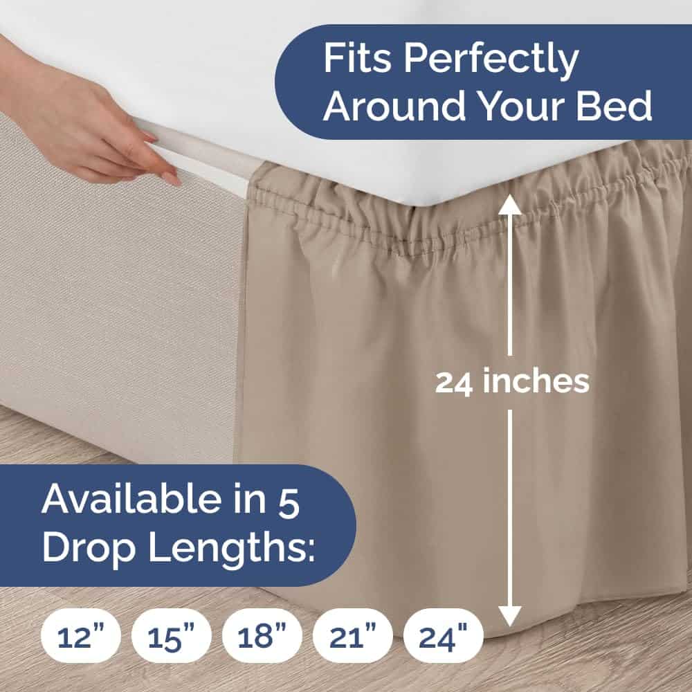 3. ELÁSTICO ENVOLVENTE SE MANTIENE EN SU LUGAR: El más ligero movimiento puede descolocar los faldones de cama envolventes normales. Nuestro faldón de cama tamaño queen está diseñado para permanecer en su lugar con el actualizado elástico de CGK Linens.