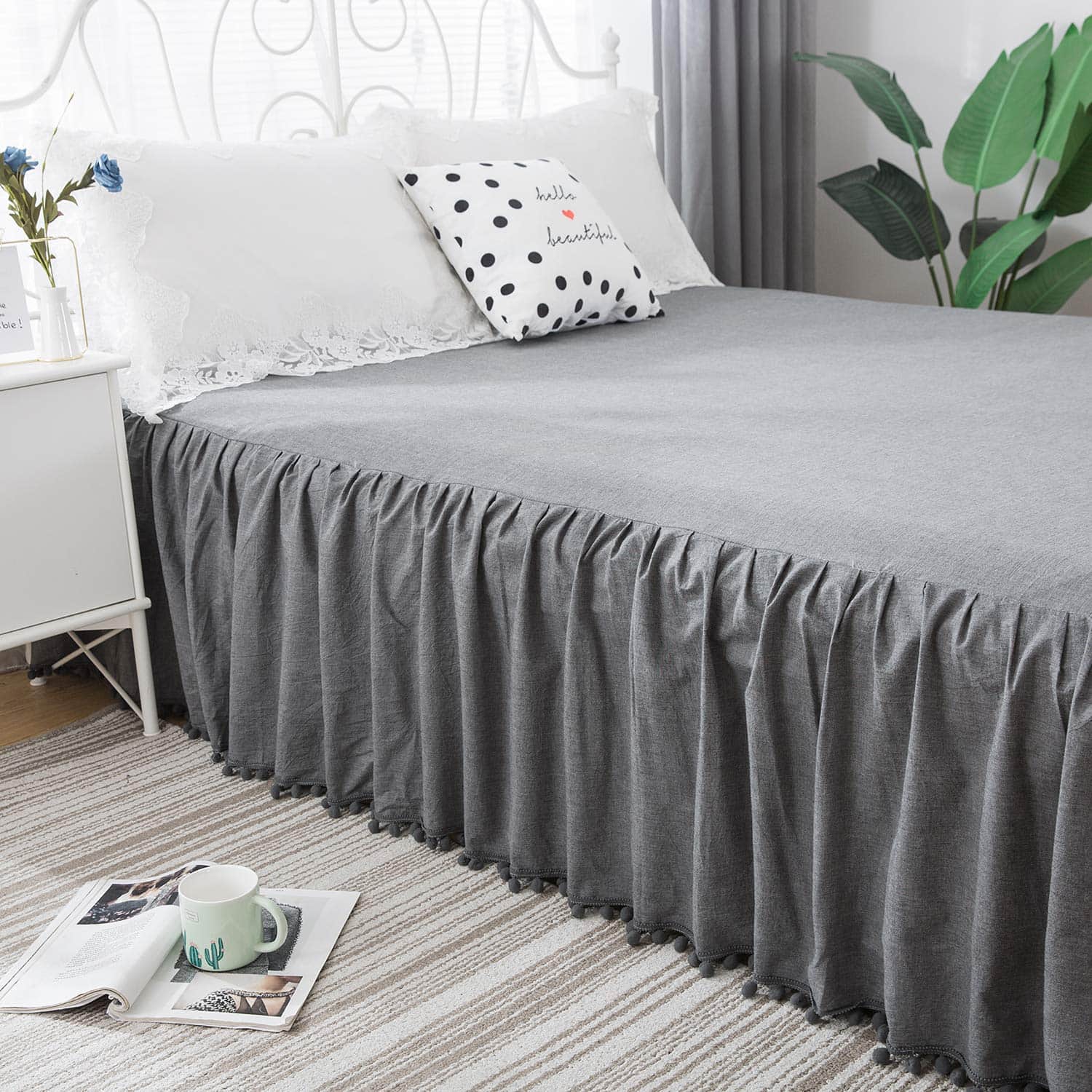 Faldón de Cama California King Size Gris Ruffle Boho
