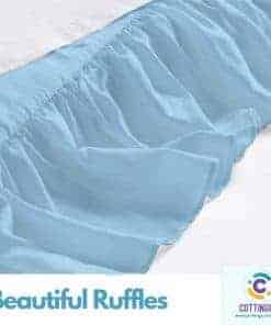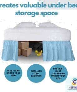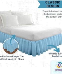 Faldón de cama con esquinas divididas – Faldón de polvo de 18″ – 100% Microfibra suave y lujoso – Faldones de cama en Azul Claro para Queen. Este faldón de cama presenta un diseño fruncido encantador con fruncidos alrededor de 3 lados de la cama para un aspecto clásico y hermoso. Hecho de 100% microfibra, esta falda no se decolora ni se apelotona, y es lavable a máquina. Las esquinas divididas proporcionan una apariencia elegante, colgando con gracia y ocultando el espacio debajo de la cama. La tela es preencogida, resistente a las arrugas y con colores que no se desvanecen, garantizando una longevidad óptima. ¡Agregue un toque de elegancia a su dormitorio con este faldón de cama de calidad!